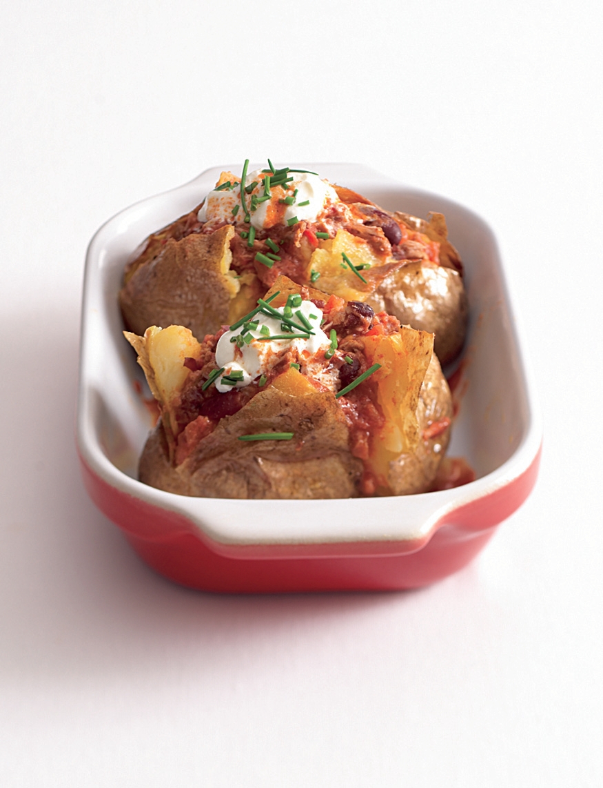 Pro milovníky pikantních chutí. Roštěnky, chilli, fazolky, spousta bylinek a lahodné pečené brambory.