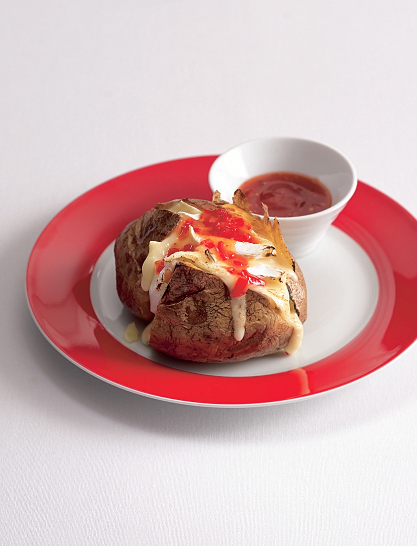 Opravdu pikantní záležitost. Pečené brambory, sýr s plísní, chilli omáčka a chilli papričky.