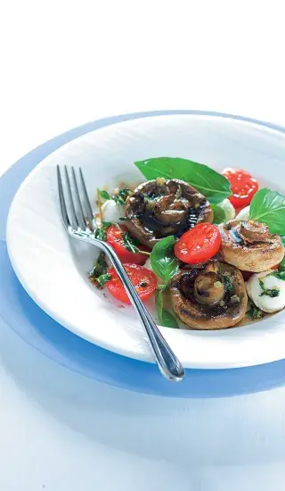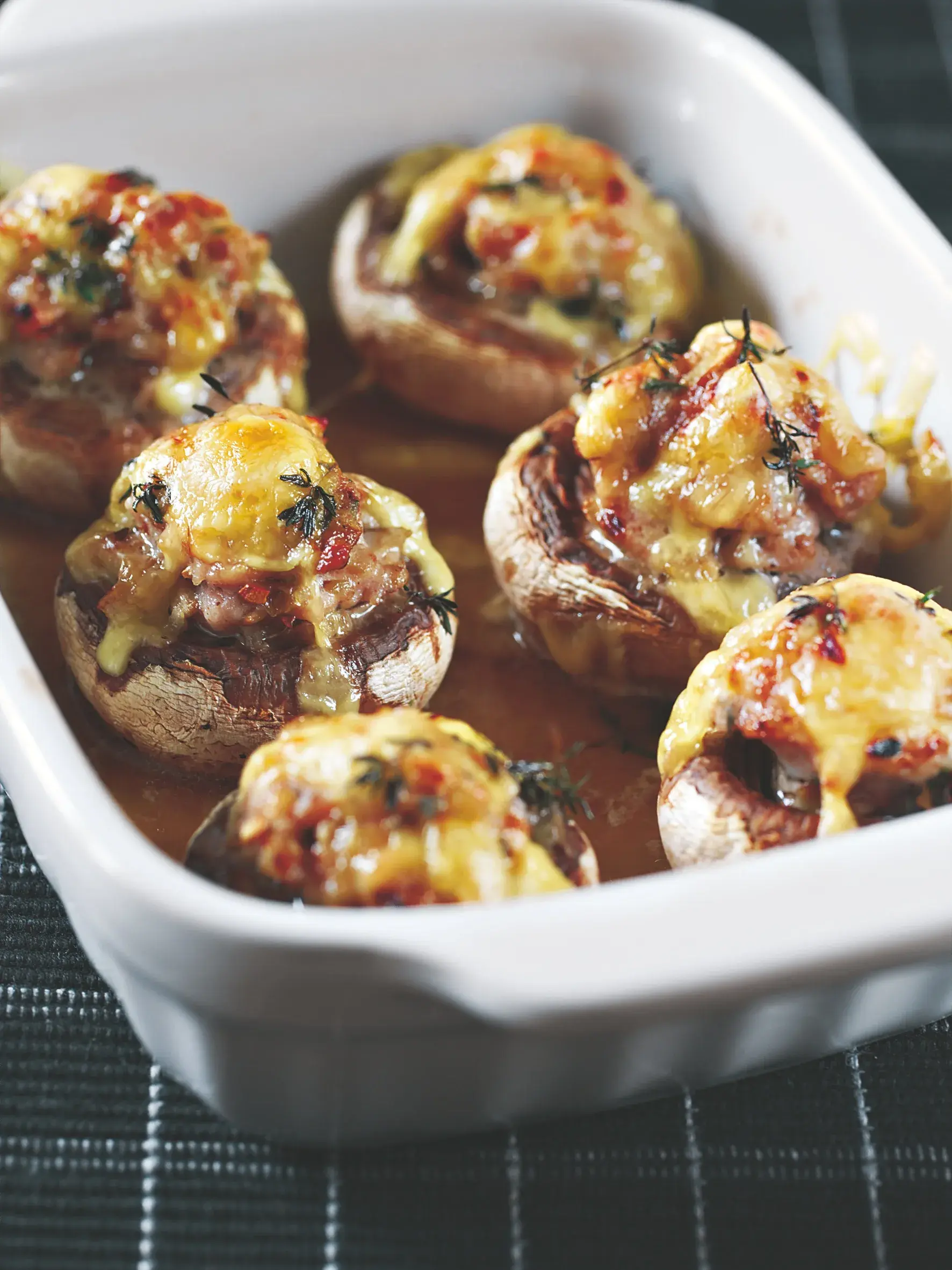 Neodolatelné plněné žampiony oceníte jako rychlou večeři, nebo jako chuťovku na letní party s partou kamarádů. Tentokrát není nutné tvořit žádnou složitou nádivku, stačí vinná klobása, osmažená cibulka a nožky z hub. Tymián pokrm krásně ovoní.