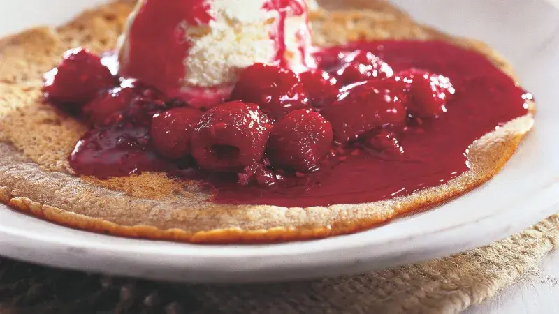 Pohanková mouka má sytou, zajímavou barvu i chuť, která obzvlášť vynikne v těchto lahůdkových palačinkách. Doplňte je svou oblíbenou zmrzlinou a šťavnatým horkým ovocem, a máte dezert snů!