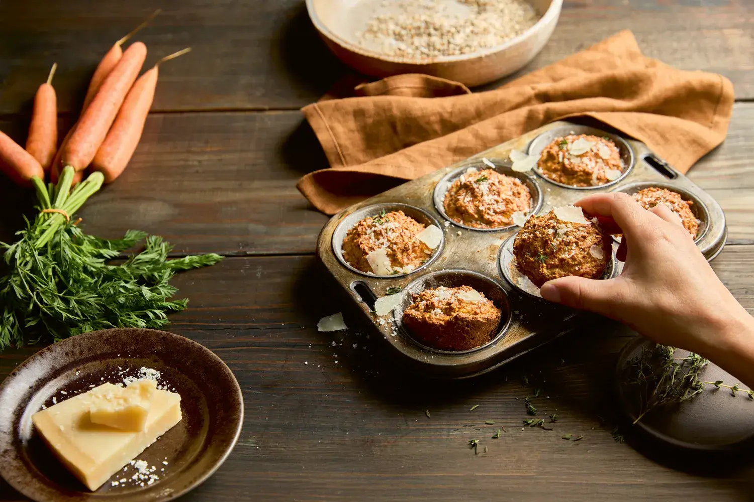Pokud hledáte zdravou, ale zároveň chutnou svačinu, vyzkoušejte tyto pohankovo-mrkvové muffiny s eidamem a parmazánem. Jsou nadýchané, plné zeleniny i kvalitních sýrů a hodí se jak na rychlou snídani, tak jako slaný snack do práce nebo na cesty.