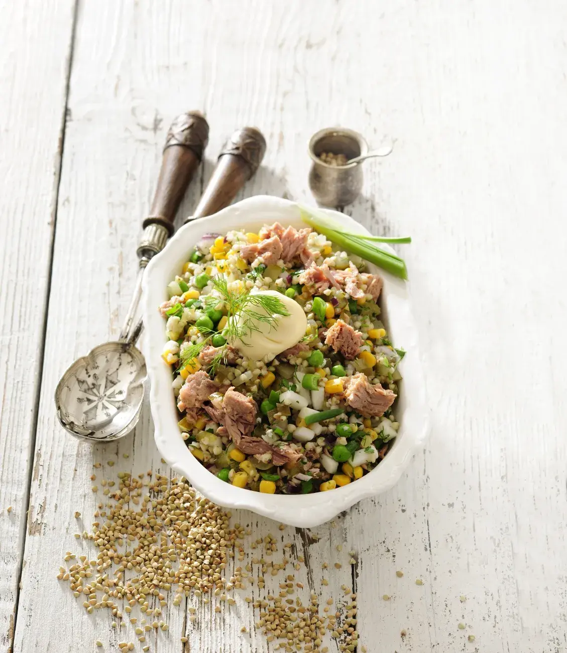 Pohankový salát s tuňákem je rychlou a sytou variantou oběda do práce nebo skvělým nápadem na lehkou večeři. A protože pohanka si u většiny z nás své místo v jídelníčku stále hledá, tohle je bezvadný recept, jak se s ní spřátelit.