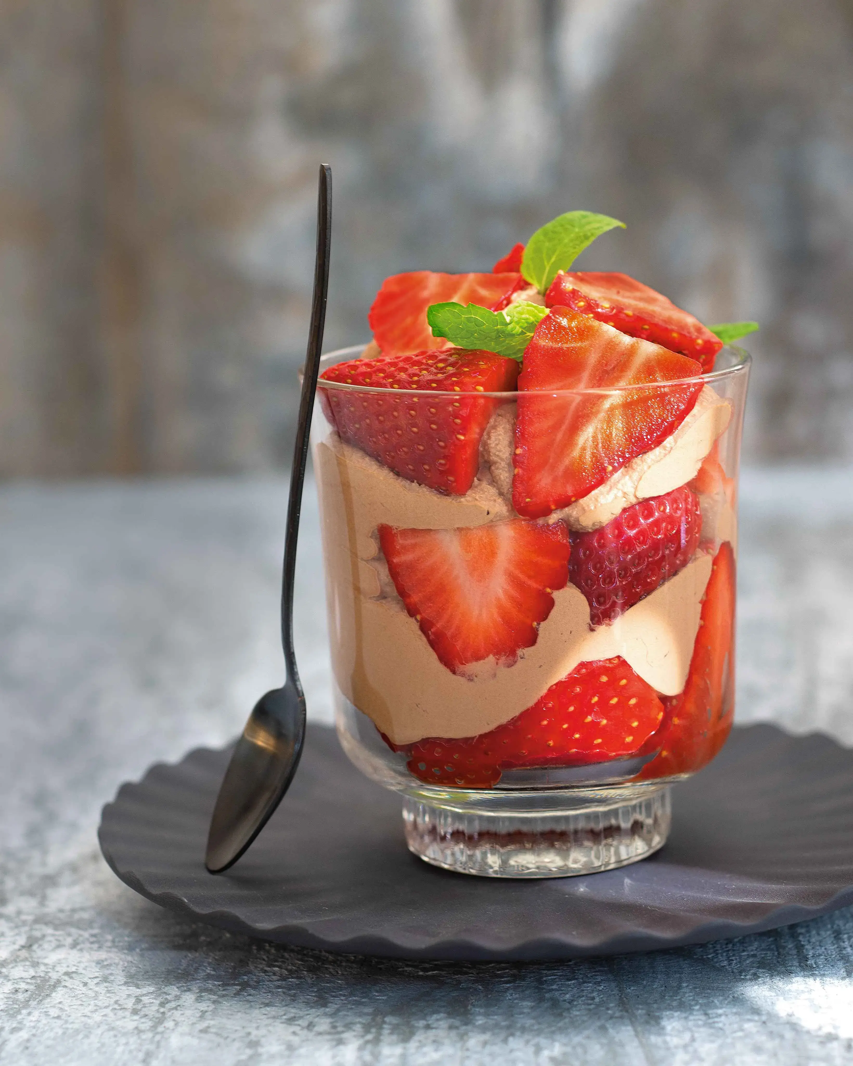Patříte-li k lidem, kteří z dortu vyzobají ovoce, snědí krém a na talířku nechají korpus, je tenhle pohár s čokoládovým krémem a čerstvými šťavnatými jahodami dezertem přesně pro vás. Navíc vůbec nemusíte rozpalovat troubu!