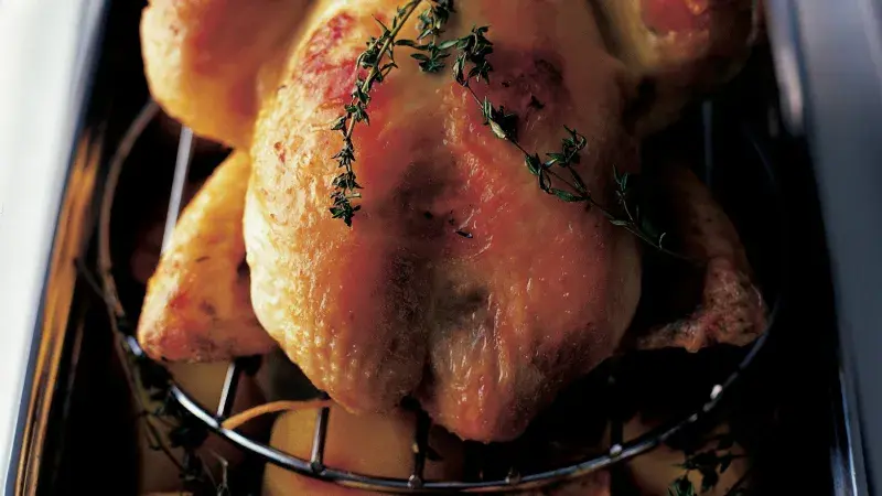 Karolína Leitnerová, která pro Apetit tvoří styling jídla, tvrdí, že ač je klasicky pečené kuře snadné, vůbec nemusí být obyčejné... Pokrokové kuře voní česnekem a bylinkami.