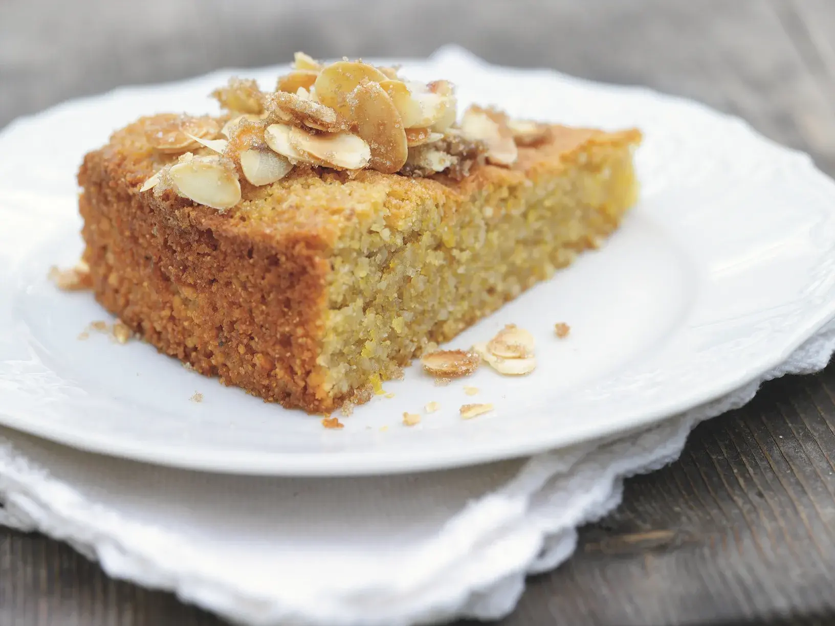 Tohle není koláč, ale rozplývající se mana z vláčných, jemných drobečků! Kromě mletých mandlí se v koláči uplatní hrubá kukuřičná mouka, která dodá těstu kyprost, zlatou barvu a delikátní chuť. Místo citronů můžete použít i pomeranče.