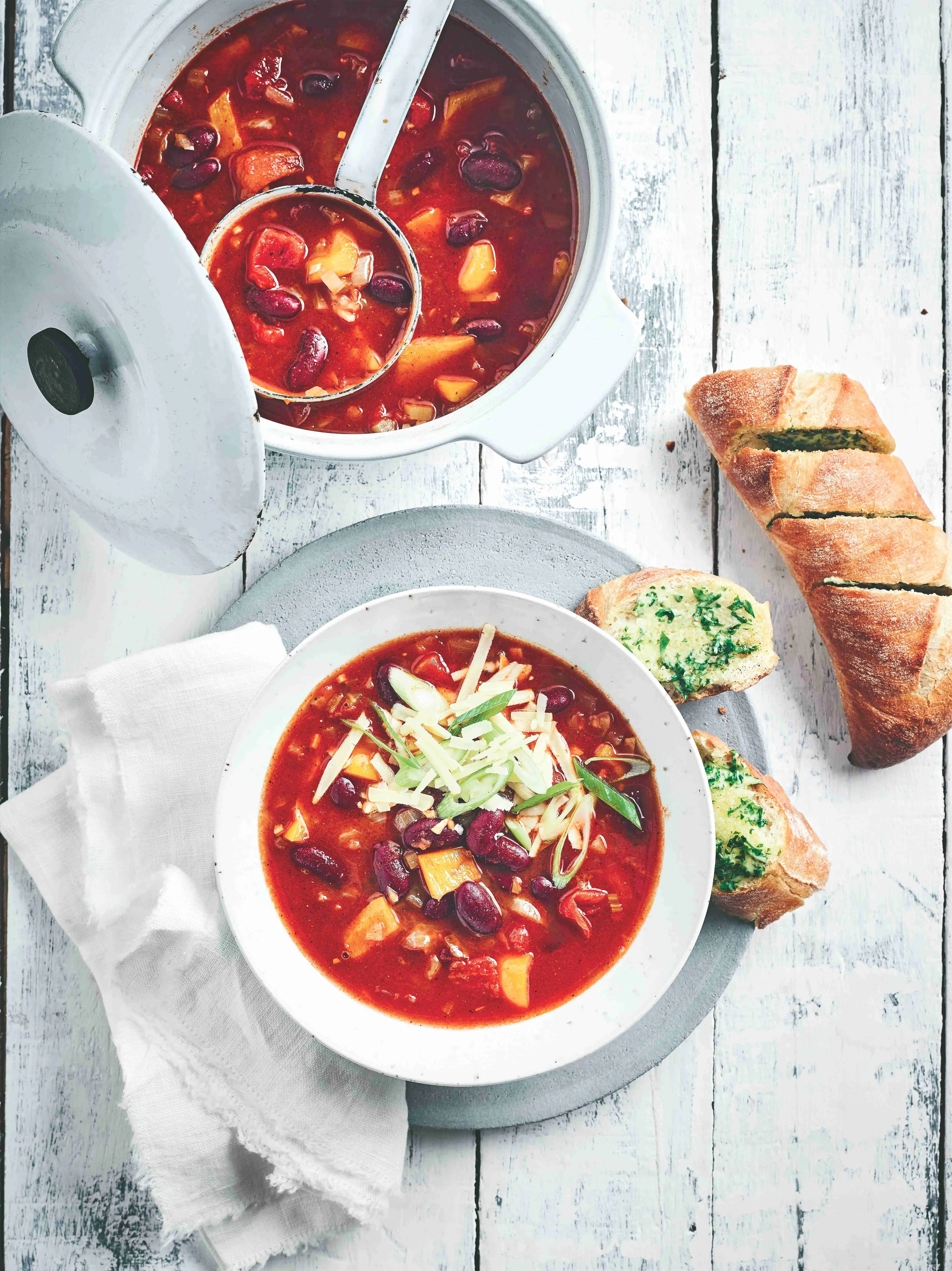 Bezmasá polévková verze známého pokrmu texaské kuchyně chili con carne. Ve své domovině se stejně jako masová verze nazývá prostě chili (a píše se s jedním ,l‘, což odpovídá jménu chilli papriček ve španělštině a americké angličtině).