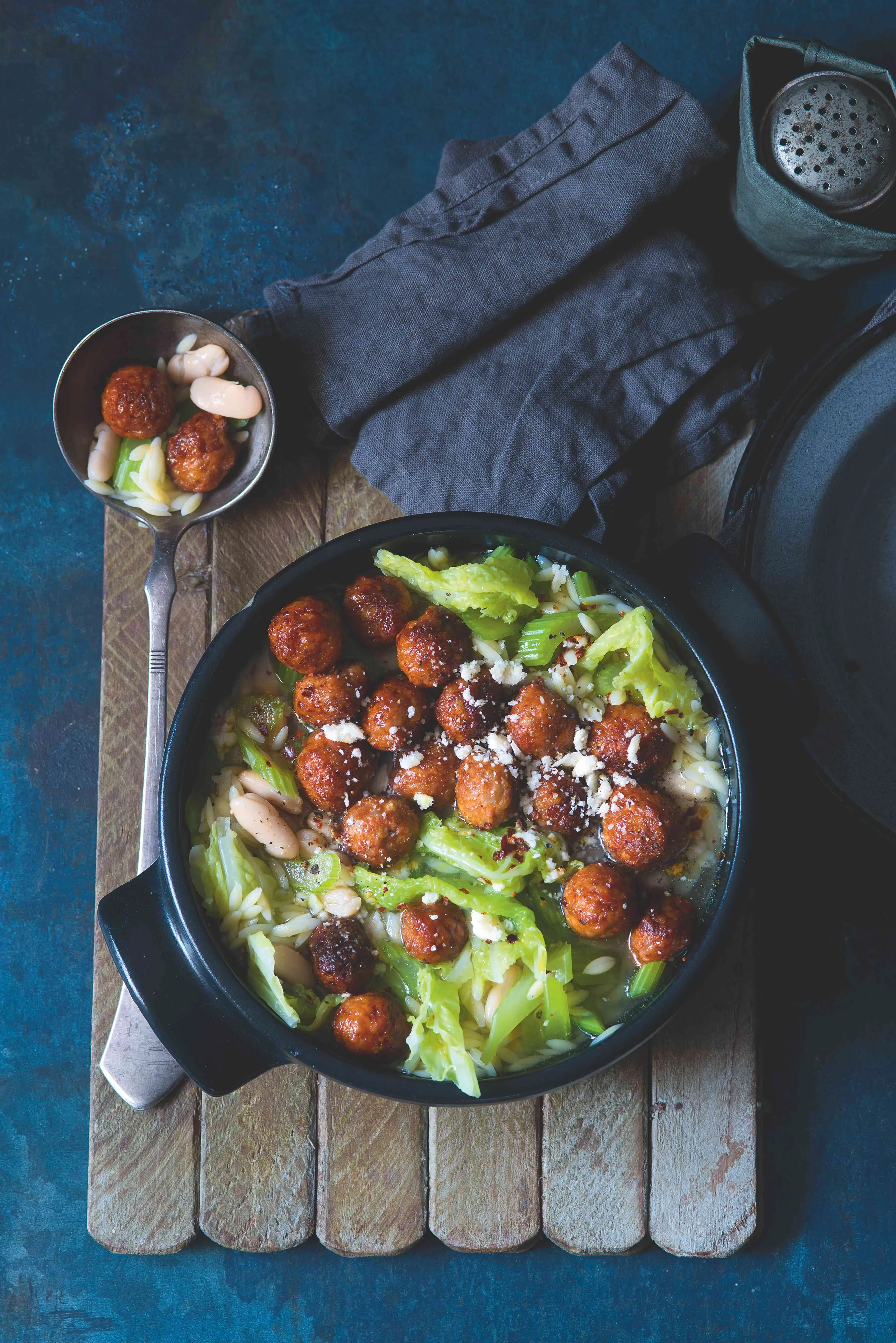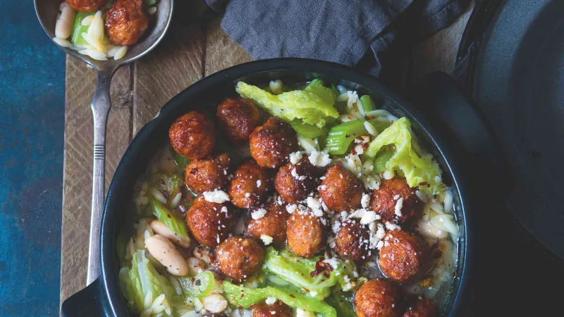 Masovým kuličkám to sluší i v polévce! Stačí přidat kapustu, těstovinovou rýži a fazole a opravdová hostina je na světě.