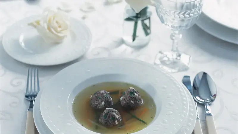 Mandle dodají játrovým knedlíčkům křupavou strukturu a zjemní jejich chuť. Na slavnostní polévku si připravte dobrý vývar z kuřecích skeletů a jemně krájené kořenové zeleniny. Na osobu ho budete potřebovat asi 250 ml.