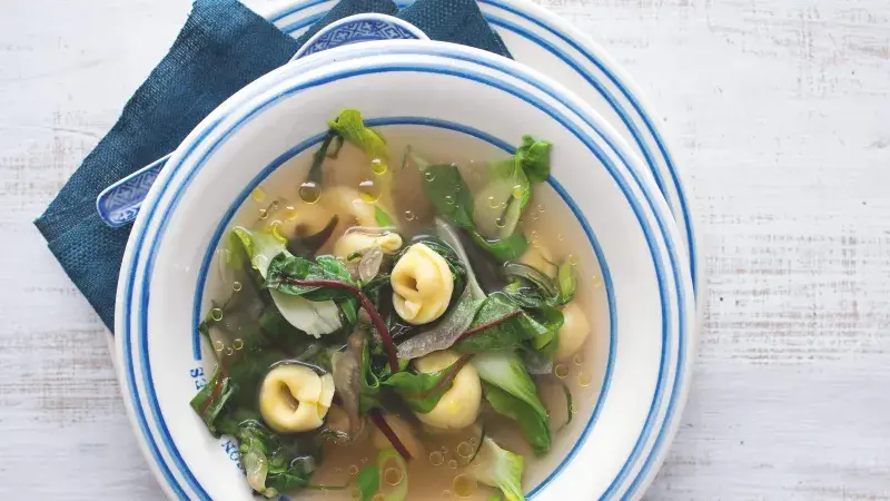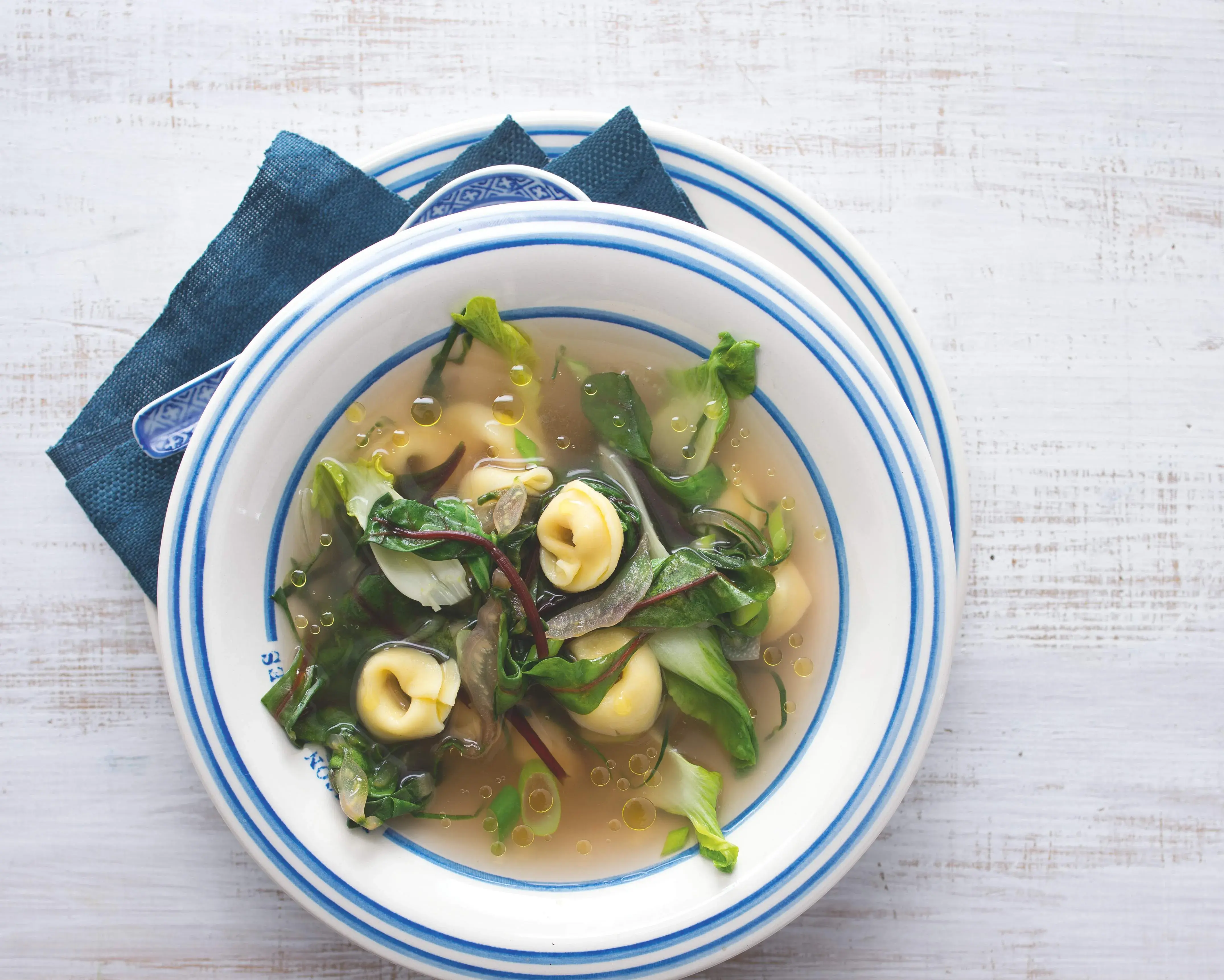 Do polévky dejte mladé lístky podle vlastního výběru. Může to být i šťovík nebo mladé kopřivy, baby špenát či jakékoli jiné pevnější listy vhodné k vaření.
