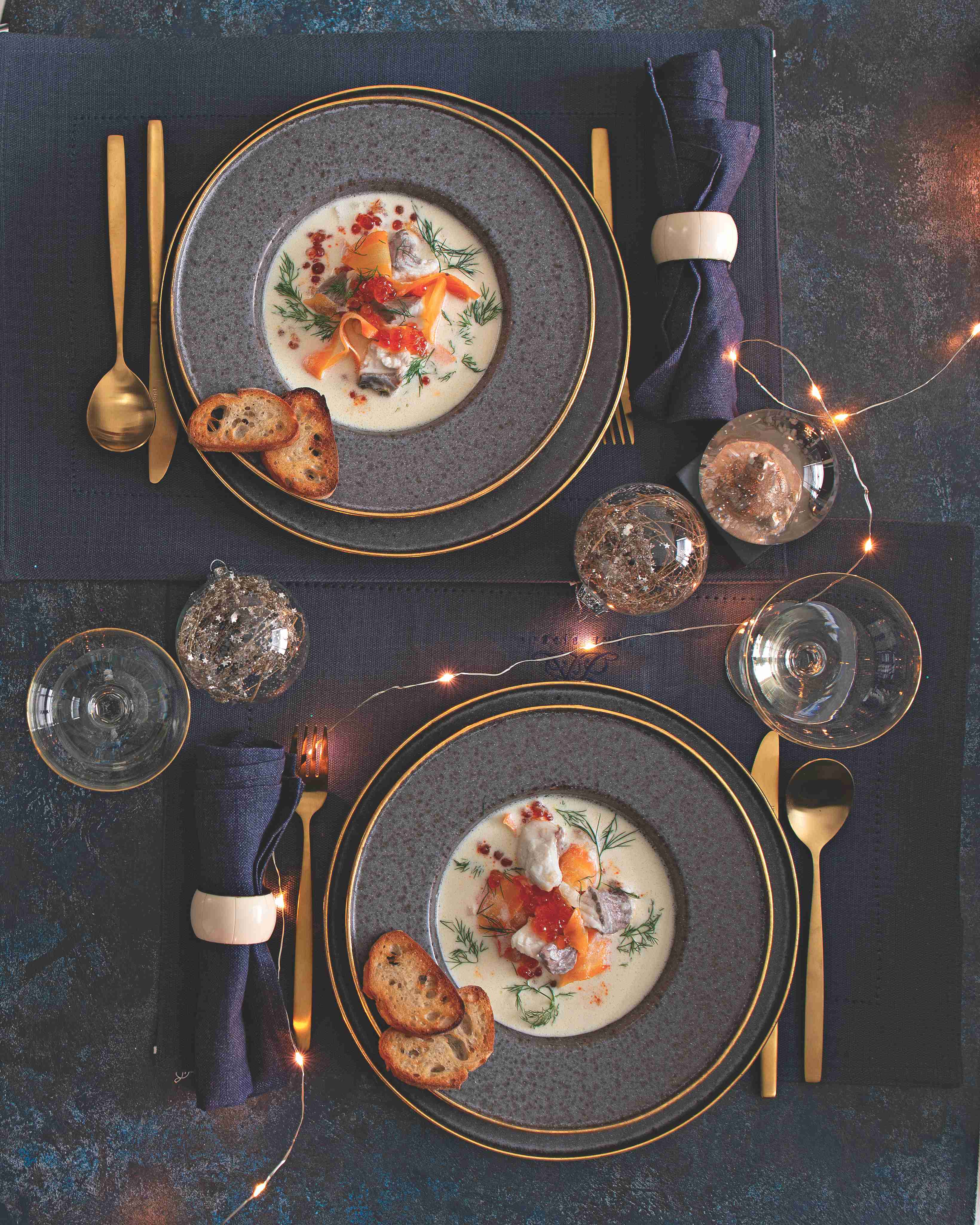 Tahle polévka je jako stvořená pro nejsvátečnější večer v roce. Pokud z ní chcete udělat naopak večeři pro všední dny, vynechte kaviár, mrkev nastrouhejte nahrubo a doplňte ji bramborami.