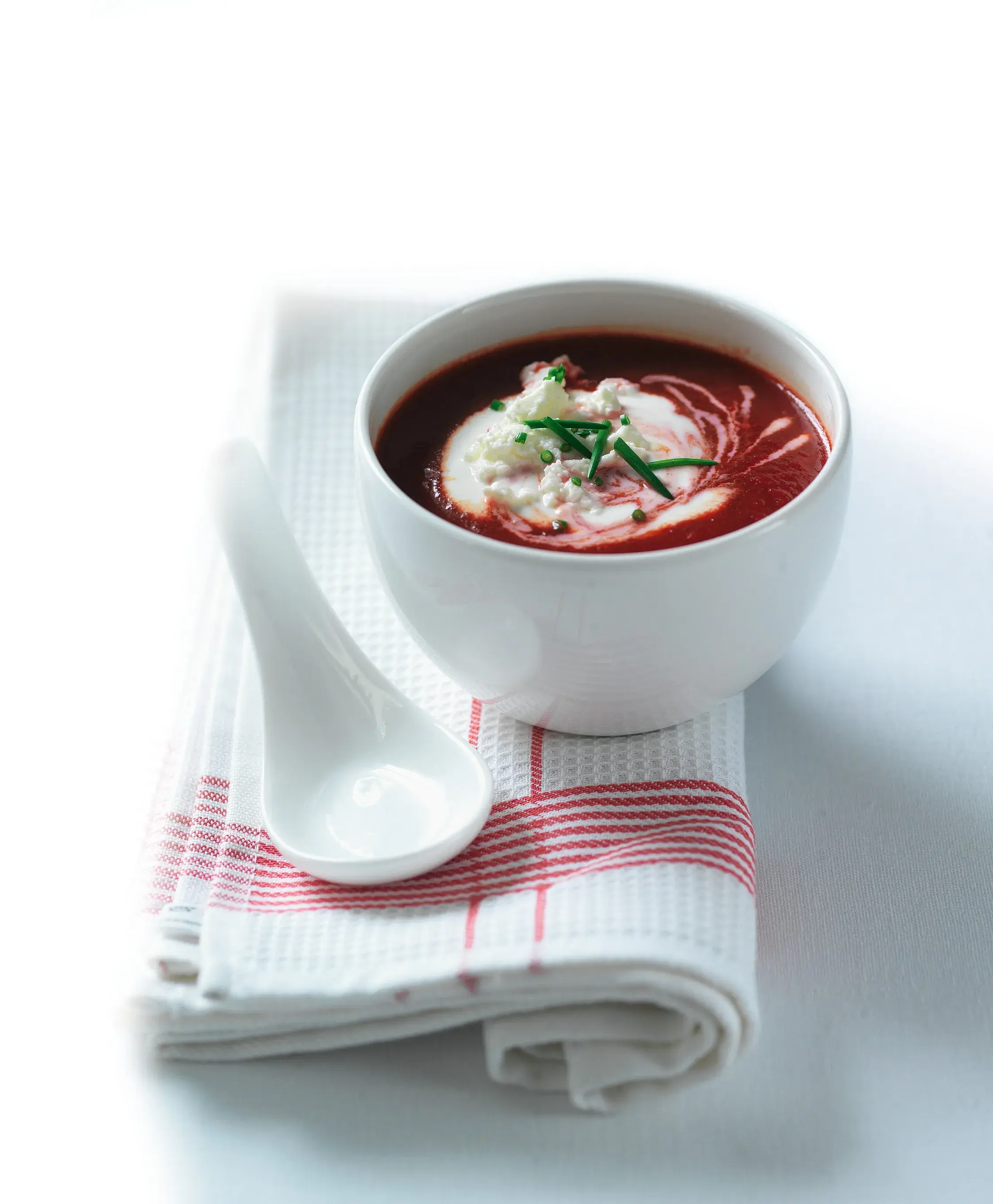 Hustá a vydatná polévka z červené řepy a rajčat, kterou můžete jíst horkou i studenou. Navíc je velmi jednoduchá. Jednotlivé porce nezapomeňte zjemnit zakysanou smetanou a přidejte také balkánský sýr. Obojí z ní udělá naprosto luxusní polévku z červené řepy, která rozšíří váš červenořepný repertoár.