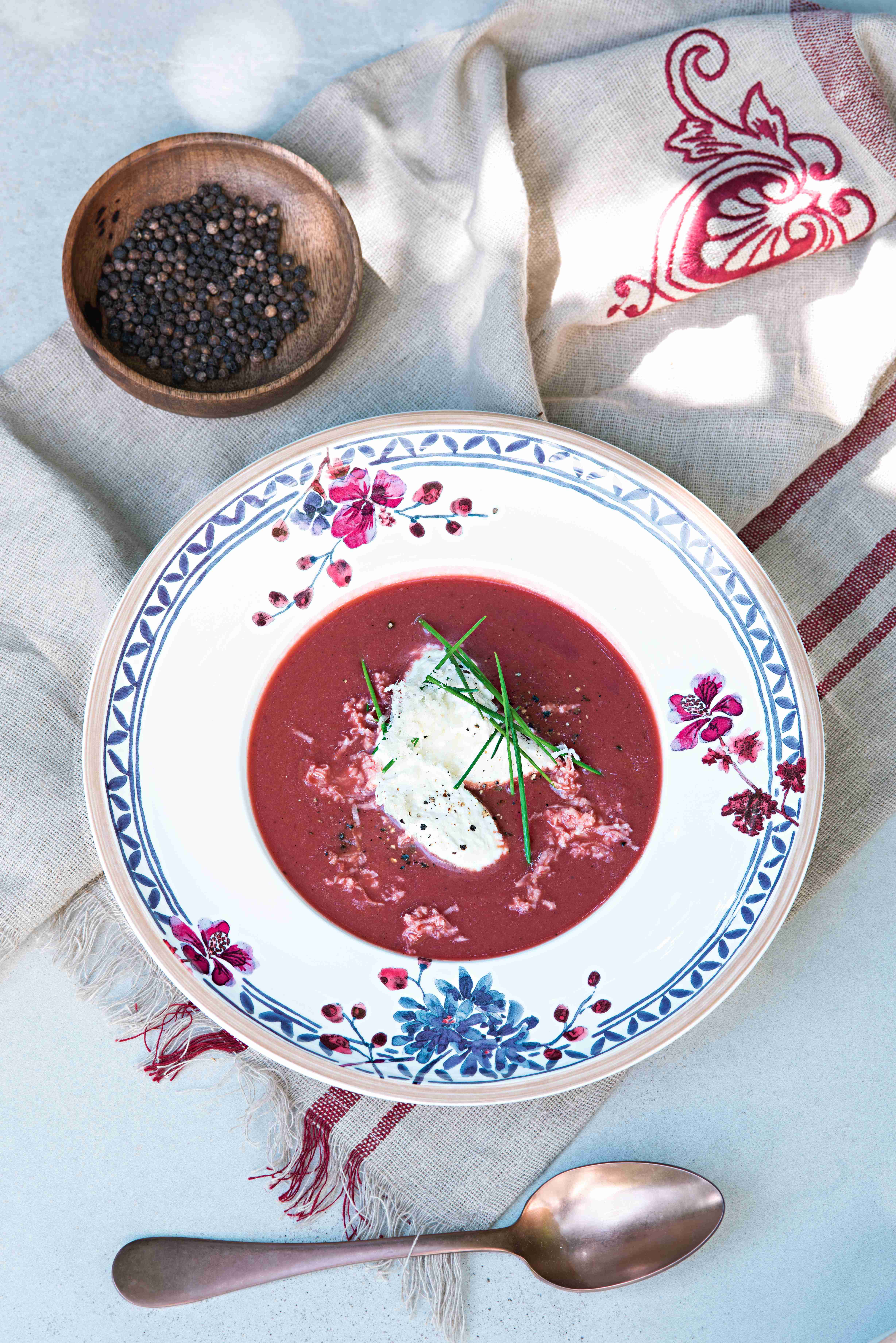 S barvou téhle polévky si můžete vyhrát. Zelí totiž mění svou barvu podle prostředí. Čím kyselejší prostředí (například díky octu nebo citronové šťávě), tím krásnější červenou barvu získá. V zásaditém prostředí přechází barva zelí zase domodra, čehož se využívá při přípravě domácích barviv. Za modrání je z běžných kuchyňských surovin zodpovědná například jedlá soda (tu bychom do polévky ovšem opravdu nepřidávali), ale třeba také vlašské ořechy.