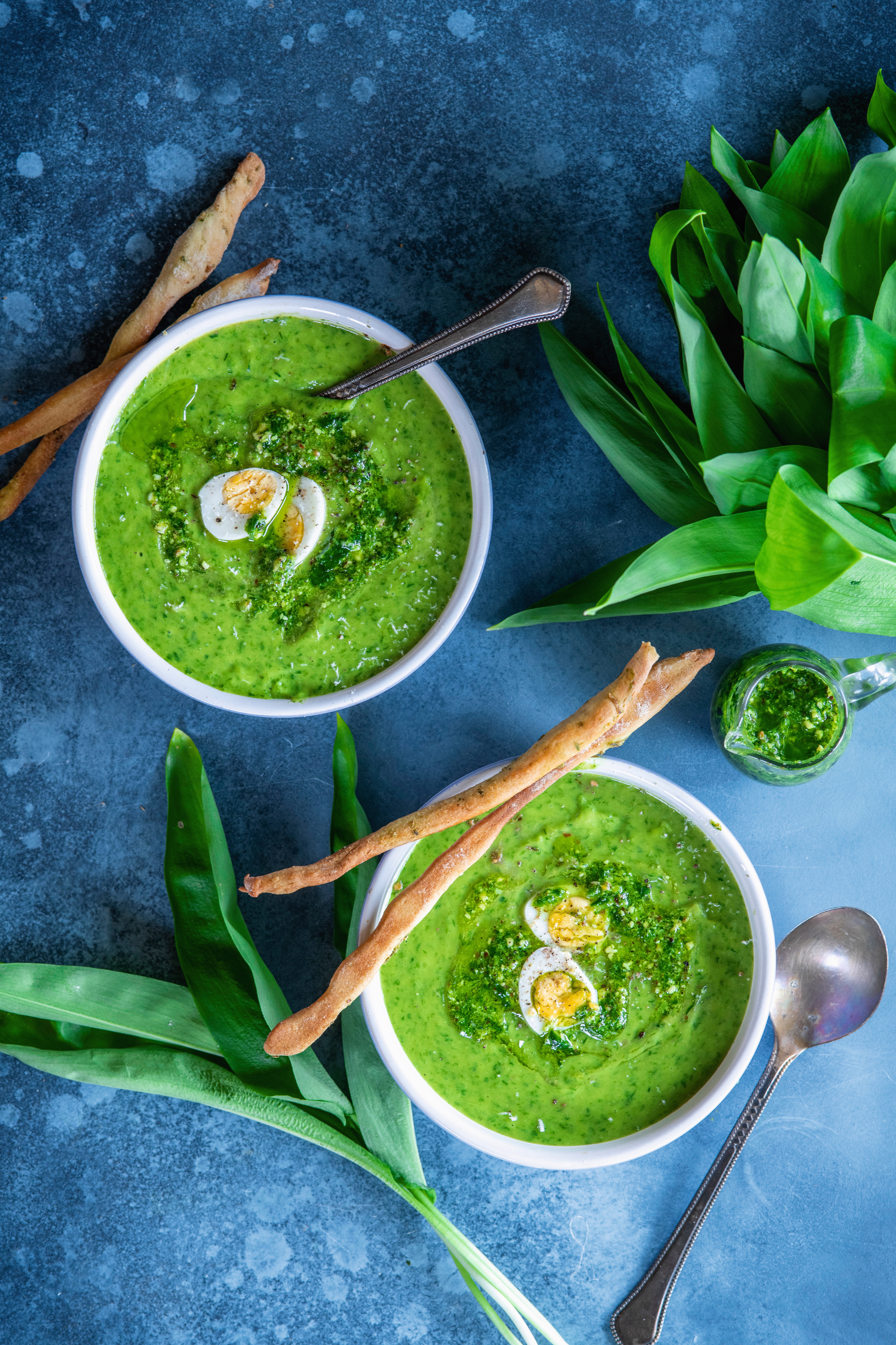 Jarní polévka z medvědího česneku s vejci a grissini – svěží, aromatická a plná vitamínů! Snadný recept na lehkou a výživnou polévku s jemnou česnekovou chutí, která zahřeje a zasytí. Podávejte s křupavými grissini pro dokonalý chuťový zážitek.