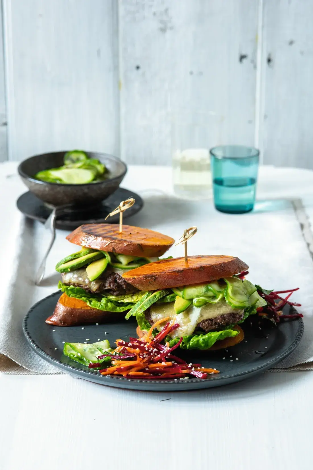 Milujete burgery, ale nezapadají vám do konceptu vyváženého stravování? Vsaďte na burger, který hraje na zeleninovou notu, obejde se bez pečiva i hranolkové přílohy a přitom je přímo božský. Polonahý burger s batáty si zamilujete!