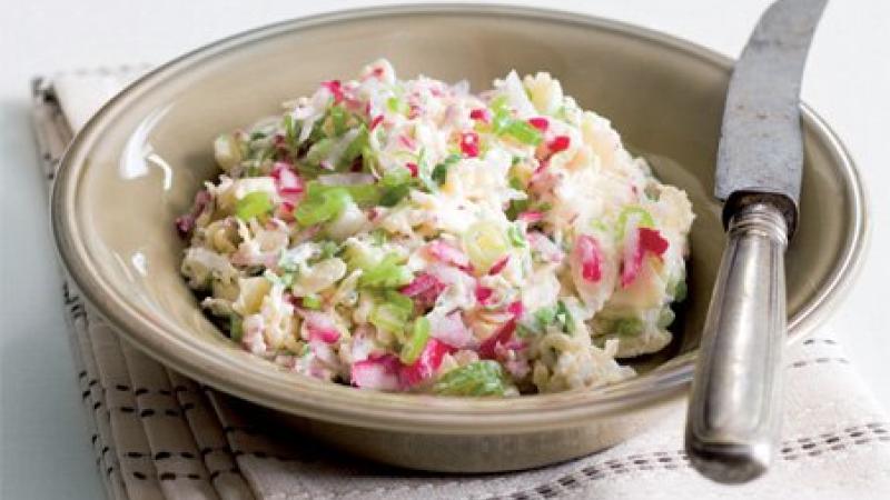 Štiplavé ředkvičky prostě na chleba patří. V této pomazánce dělají doprovod křehkým mandlovým lupínkům.
