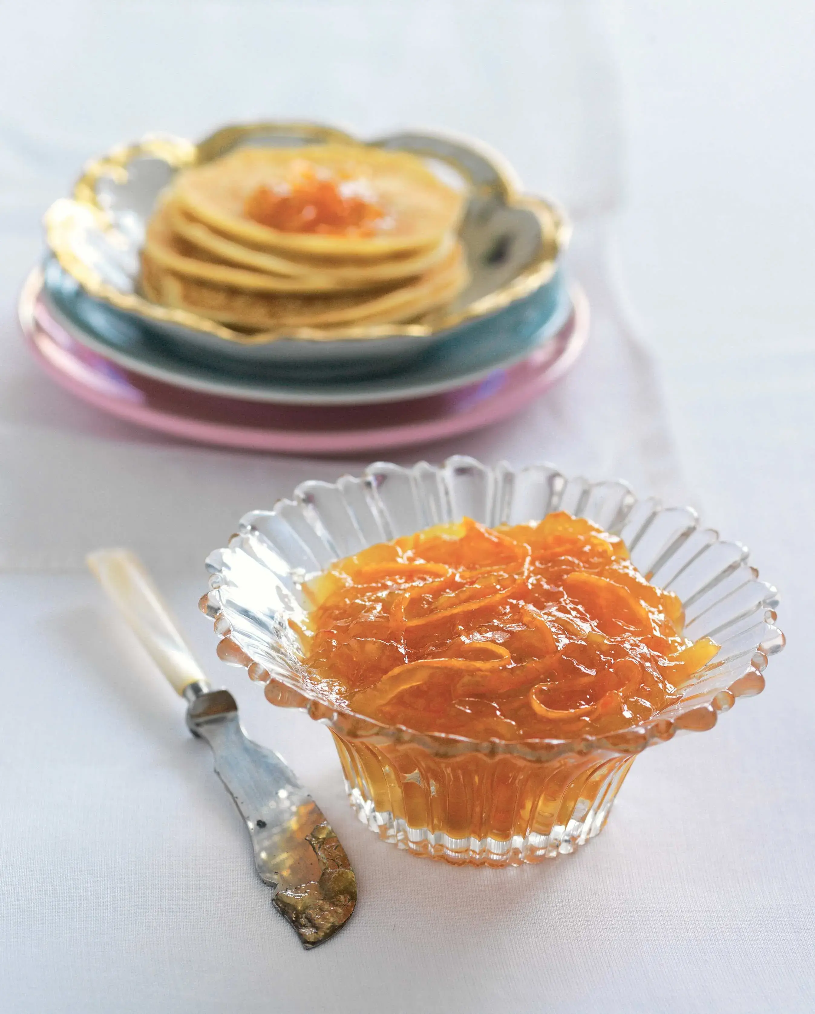 Pomerančová marmeláda s kůrou má svou charakteristickou, lehce nahořklou chuť. Rozhodně nevyhazujte ani pecky, právě ony také přidají na intenzitě chuti. Pomerančová zavařenina se hodí na palačinky, lívance, toasty, ale uplatní se i v pikantních omáčkách k drůbeži i na lososa, v dýňové polévce, promíchaná se zavařenými brusinkami ke svíčkové...