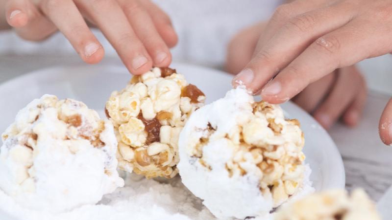 U popcornových koulí nejde až tolik o výsledek jako o výrobu. Koho by nebavilo uplácat si vlastní ozdobu?