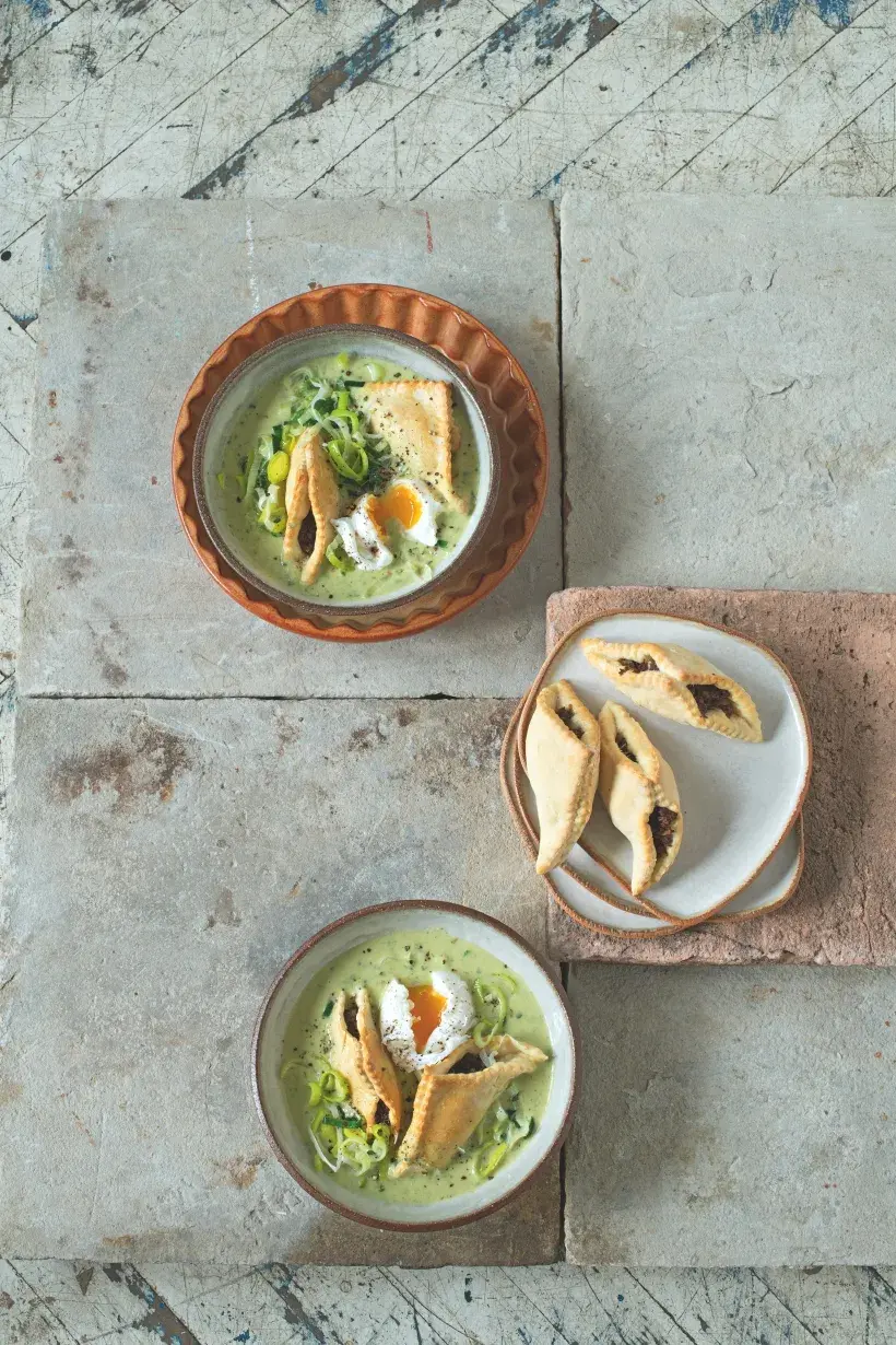 Doplníte-li talíř krémové pórkové polévky ztraceným vejcem a taštičkami plněnými mletým masem, vydá hravě i za hlavní chod. Pokud ji budete podávat jako součást několikachodového menu, můžete taštičky vynechat.