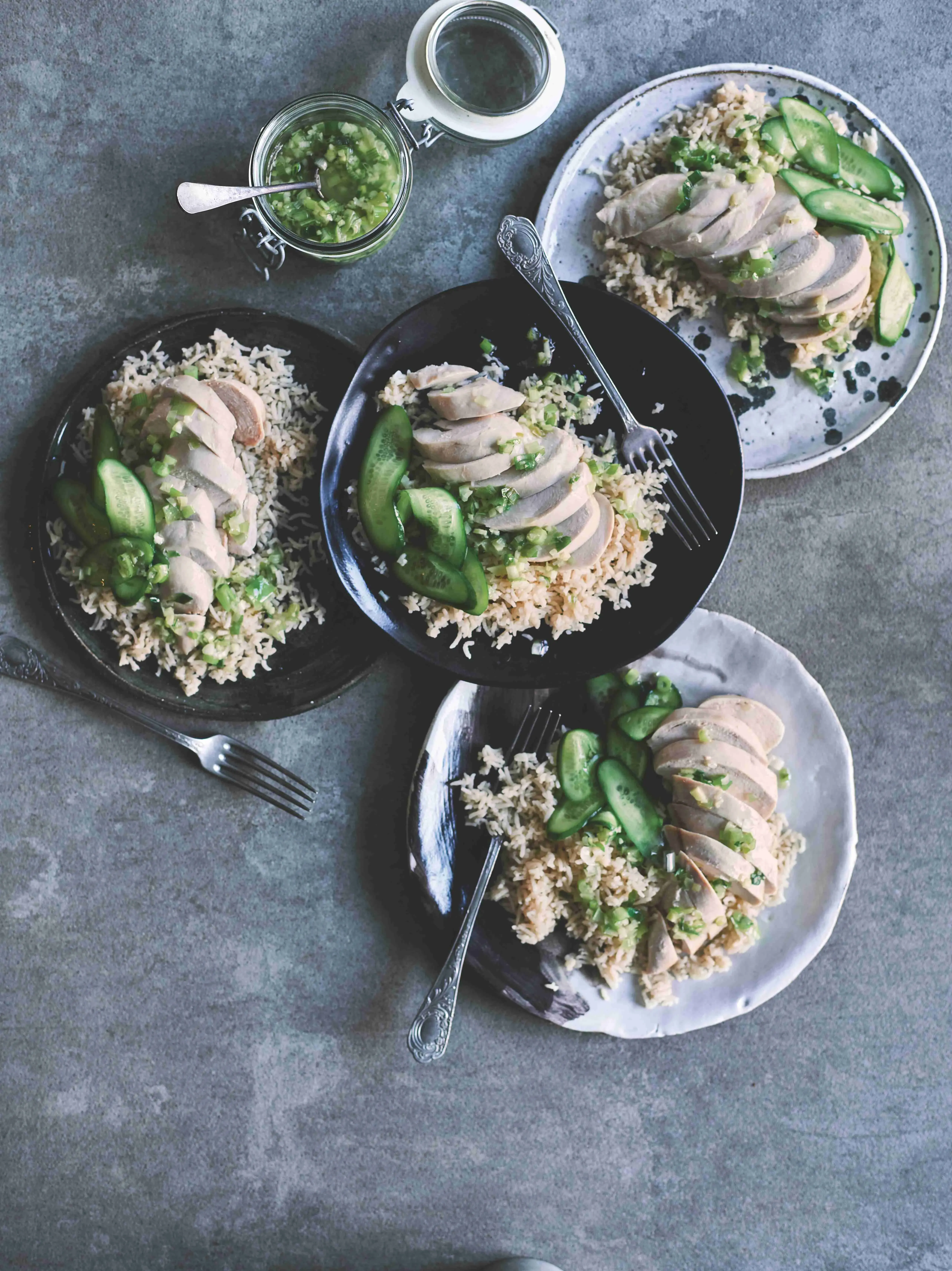 Snoubení jemného kuřecího masa s výrazným cibulkovo-zázvorovým olejem je stejným dílem neobvyklé a lahodné.