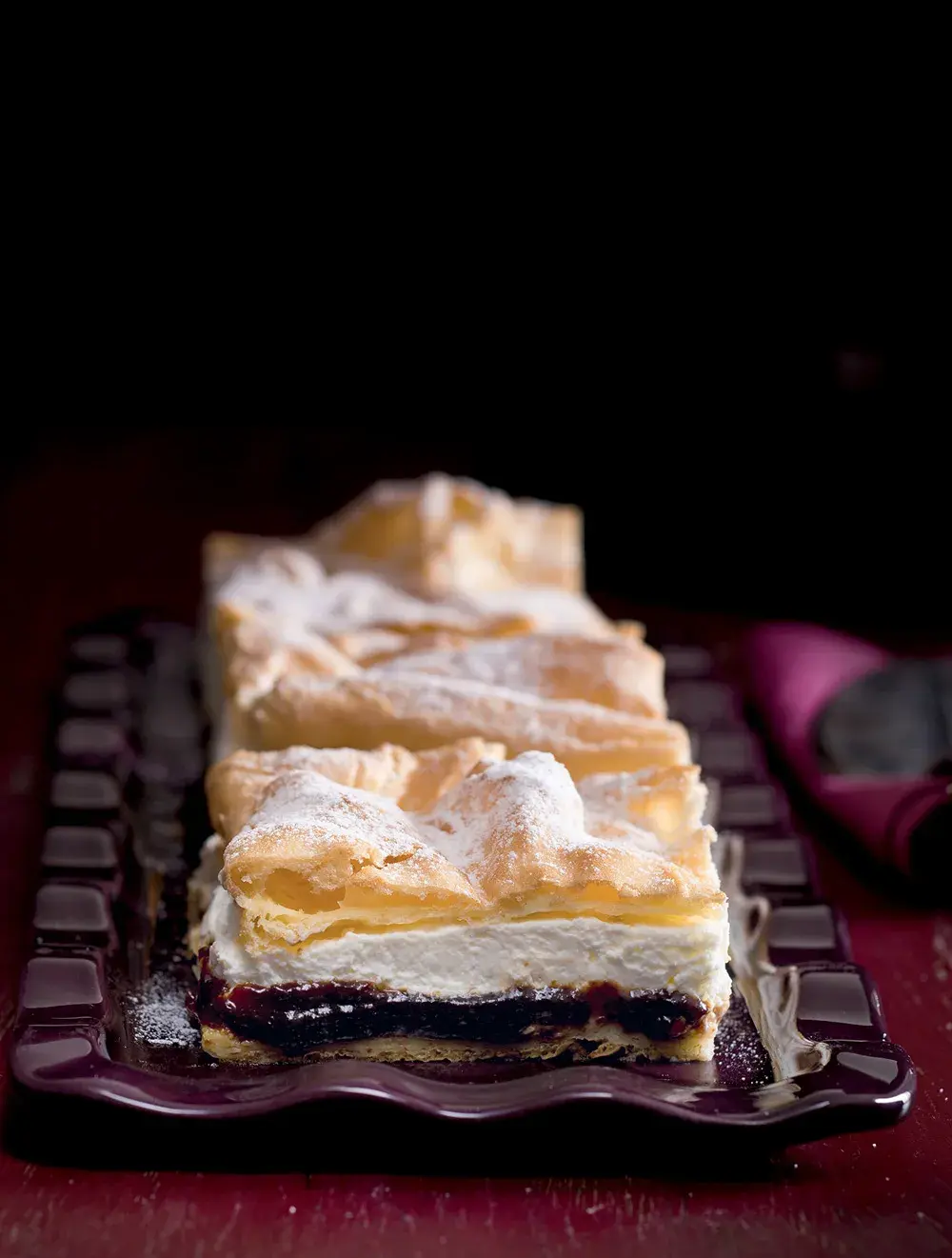 Povidloň – dokud ho neochutnáte, nepochopíte, čím nás tenhle moučník dostal do kolen! Mezi dva pláty upečeného odpalovaného těsta nanesete vrstvu rumových švestkových povidel a tvarohový krém se šlehačkou. Luxusní vzhled a dokonalá souhra chutí a barev dělá z tohoto moučníku opravdovou delikatesu.