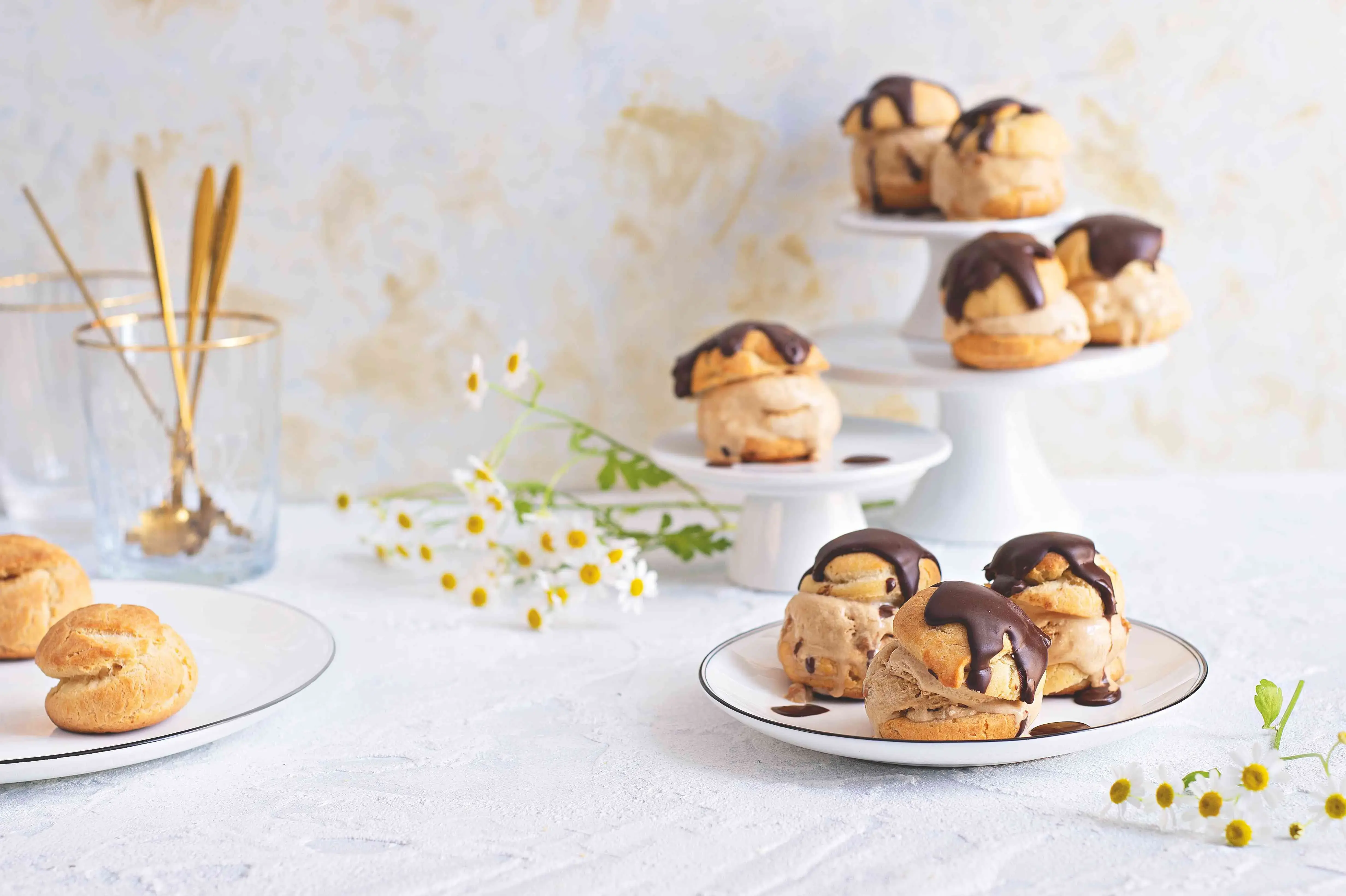 Profiterolky, tedy malé větrníčky z odpalovaného těsta, nemusíte plnit pouze nadýchanou šlehačkou. V létě zazáříte i s těmi plněnými zmrzlinou. Pozor ale, karamelová zmrzlina kvůli tekutému cukru taje rychleji než jiné druhy. Pracujte proto rychle a naplněné profiterolky odkládejte rovnou do mrazáku.