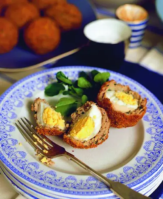 Skotská vejce, typická britská specialita, jsou něco mezi karbanátkem a španělským ptáčkem. Můžete je podávat zastudena jako pohoštění pro přátele nebo zatepla s bramborovou kaší k obědu.