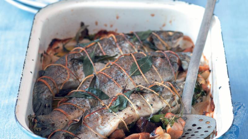 Čerství pstruzi duhoví jsou v obchodech snadno k sehnání. Stejně jako pstruzi se upravují i jejich příbuzní – siveni. Ty poznáte podle světlých teček na těle.
