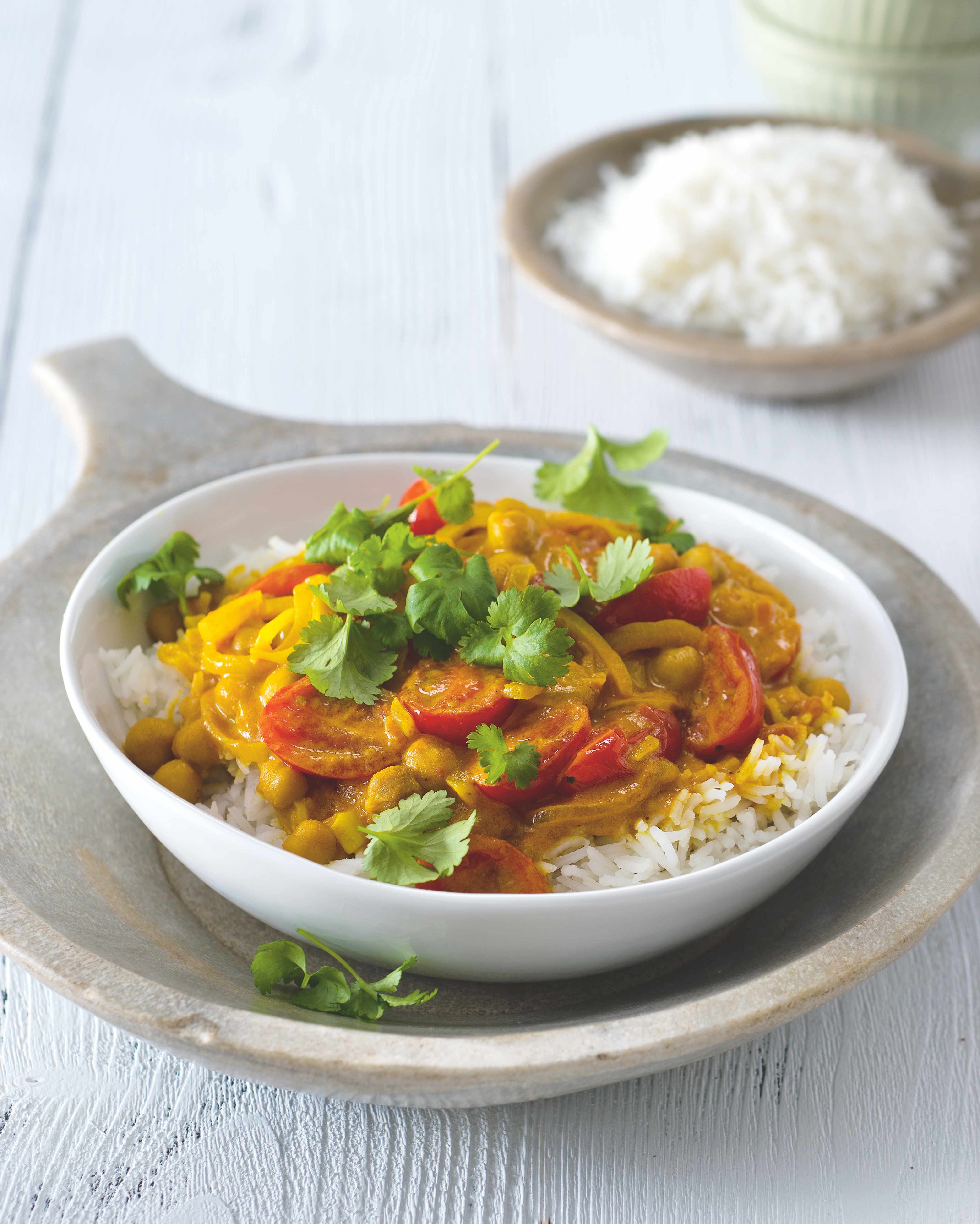 Rajčatovo-cizrnové kari je nádherně barevné jídlo, které prozáří i ten nejpošmournější večer! Mletá směs koření dodá omáčce patřičný indický nádech a kokosové mléko ji krásně zjemní. Indické kari podávejte s dušenou rýží jako vegetariánský oběd nebo rychlou bezmasou večeři.