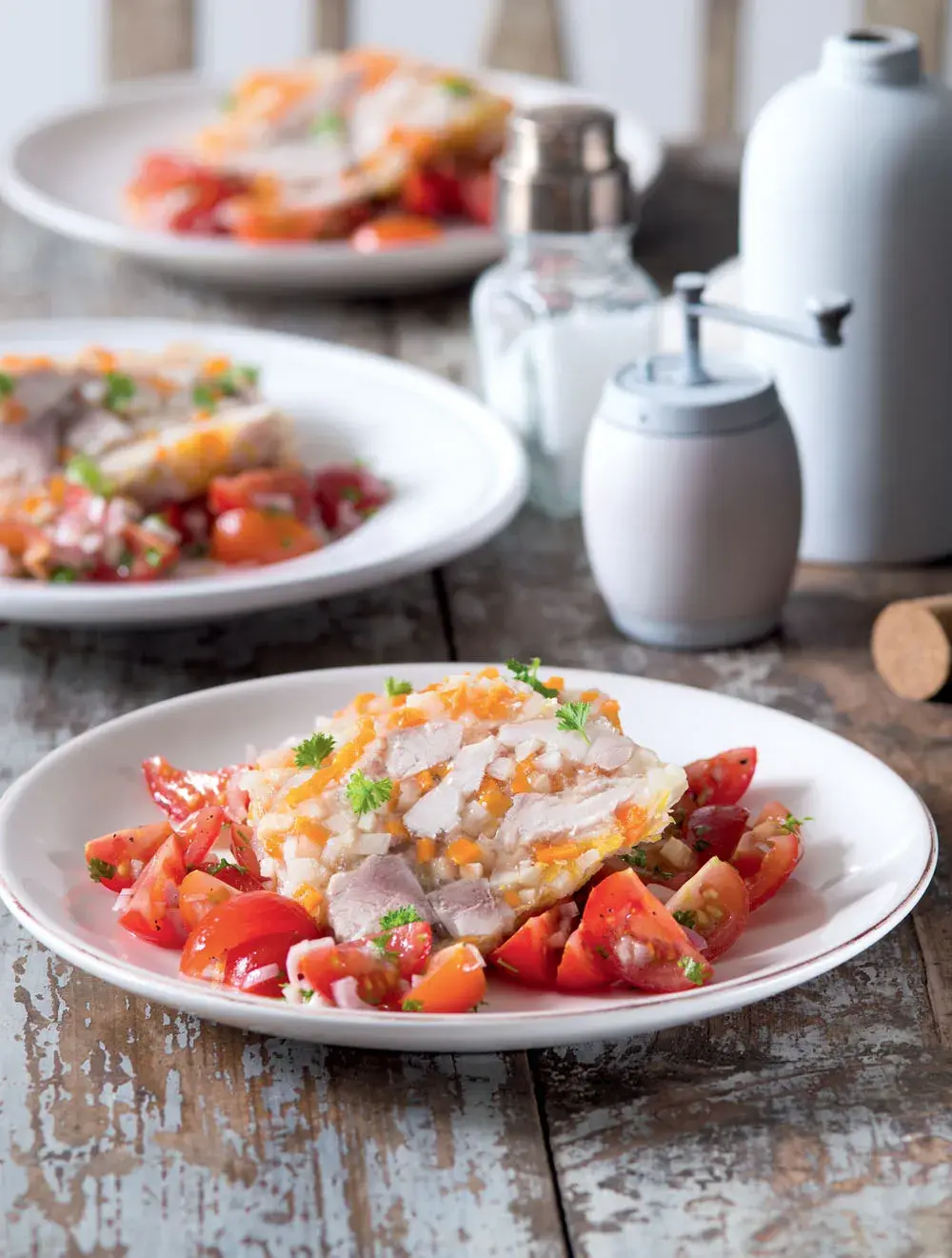 Salát je nezvykle kyselý, ale výborně doplňuje jemný aspik. Chcete-li jíst salát samotný, použijte množství oleje a octa podle své chuti.