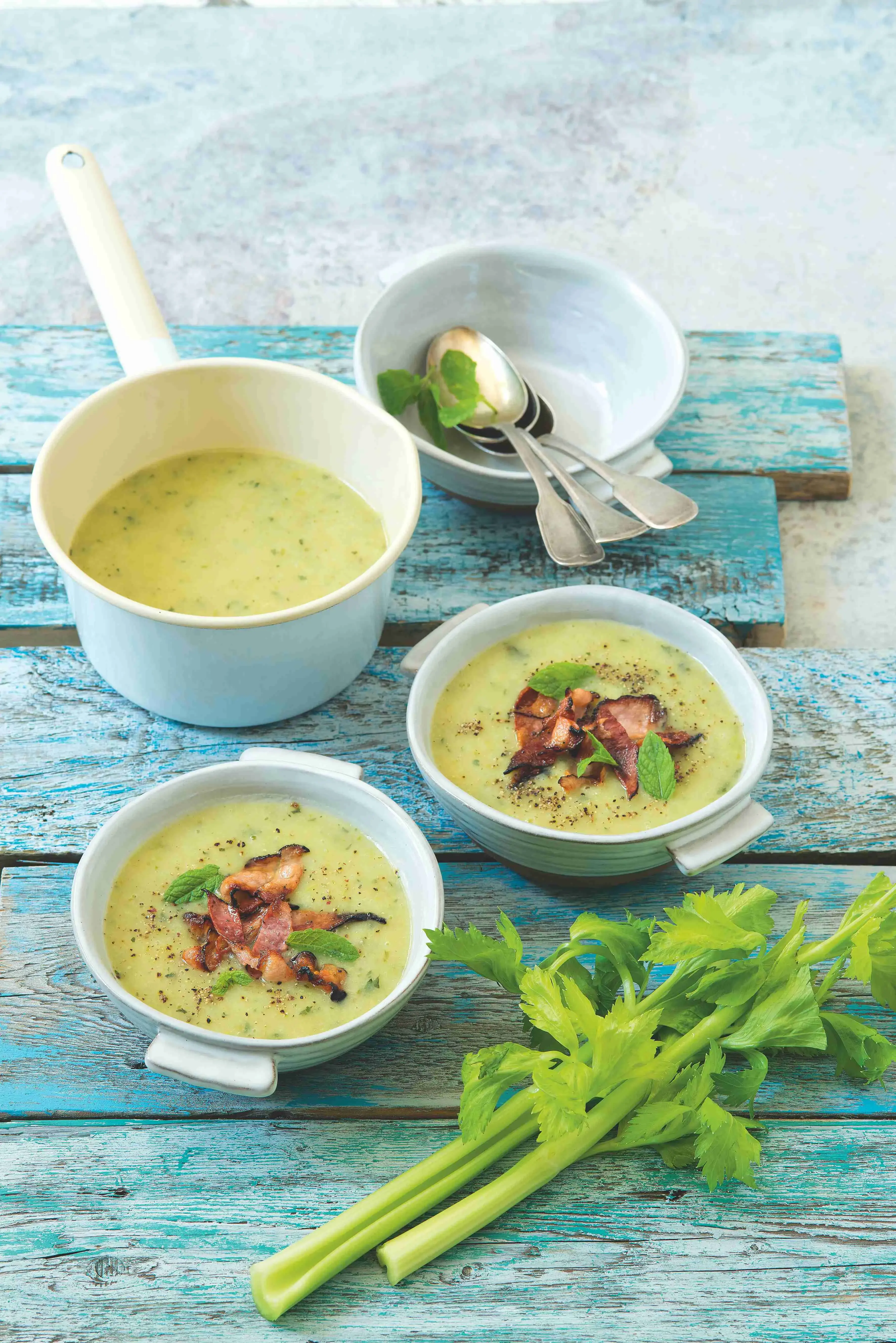 Krém z řapíkatého celeru je podstatně svěžejší než z jeho bulvového bratra. Při jeho přípravě můžete také zpracovat zbytek řapíkatého celeru a doplnit ho libovolnou kořenovou zeleninou uvařenou spolu s bramborami doměkka.