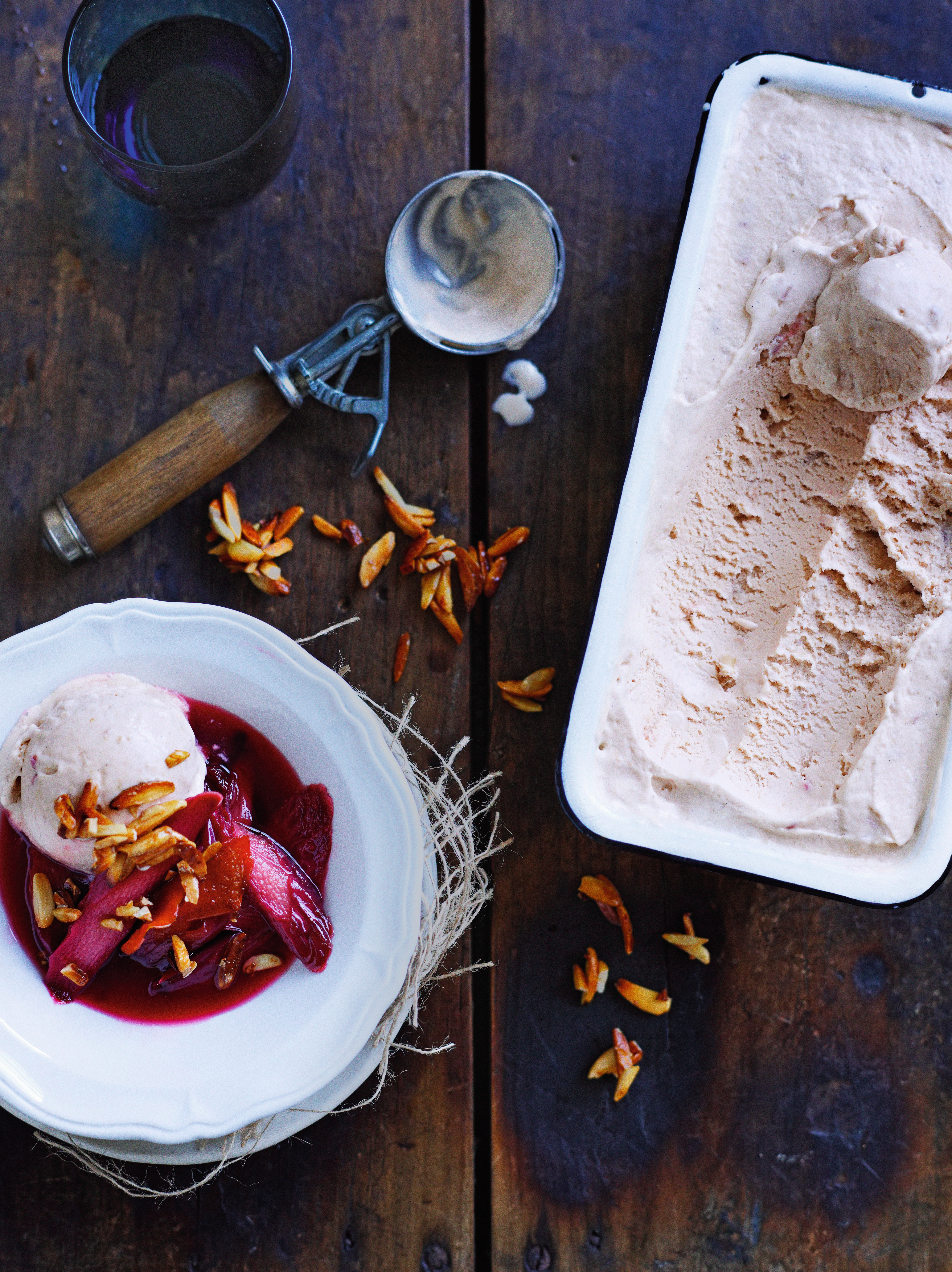Rebarborová zmrzlina? Proč ne! Když k ní přidáte karamelové mandle a pečenou rebarboru, získáte neodolatelný dezert, kterým můžete bez ostychu odstartovat zmrzlinovou sezonu. Recept lze použít na přípravu se zmrzlinovačem i bez.