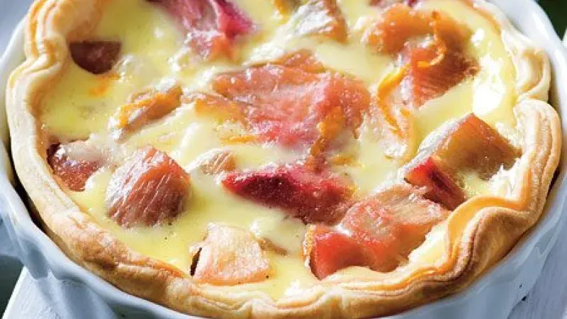 Tuhle rebarborovou lahůdku je nejlepší podávat s kopečkem zakysané smetany.