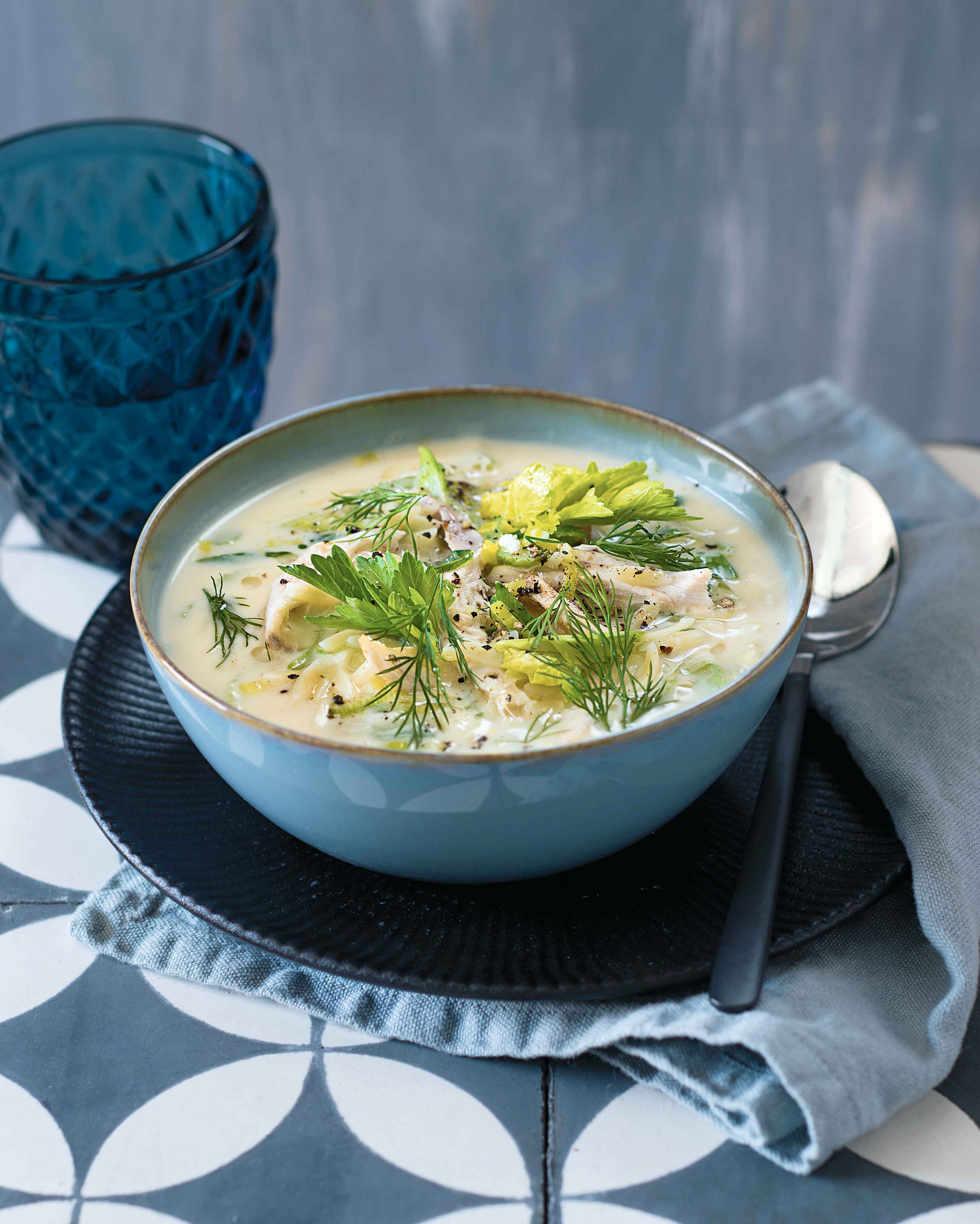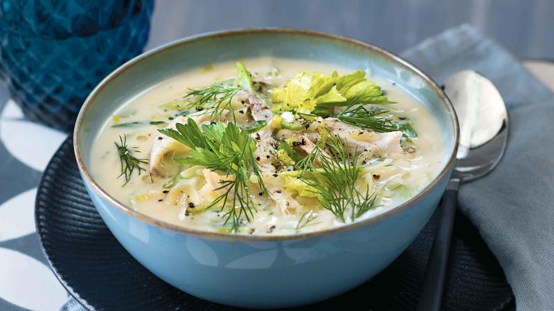Tahle řecká sváteční polévka je sytá a výživná díky těstovinám a vejcím, ale zároveň jí citron dodává svěží chuť, která je ještě podtržená čerstvým koprem.