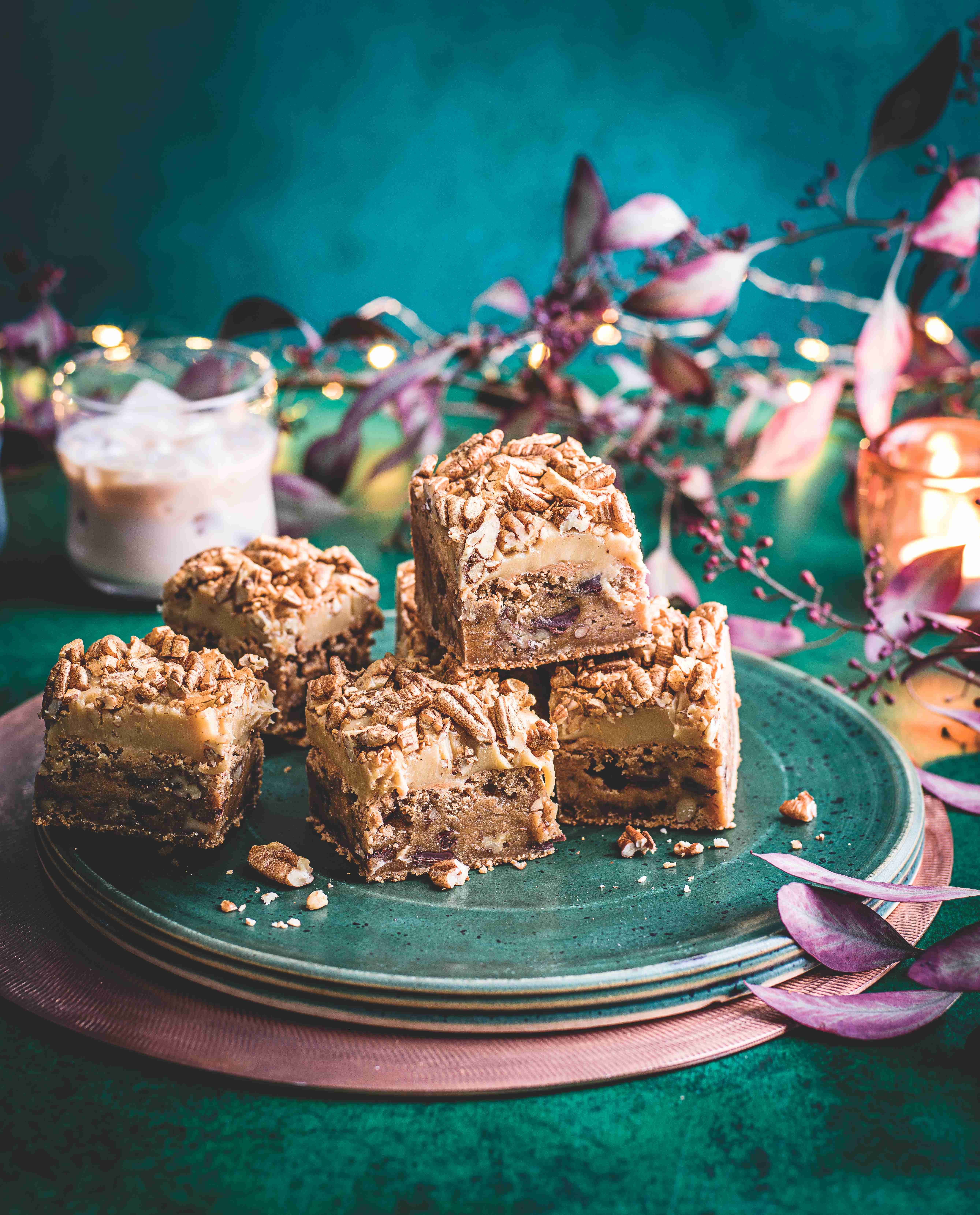 Baileys k Vánocům patří, představte si, jak stojíte v teplých vlněných ponožkách u okna, v ruce sklenku s voňavým likérem a pozorujete, jak venku sněží... Baileys je však skvělé nejen ve sklence, ale i v dezertech, jako třeba v těchto řezech. Jsou zdobené zlatem, protože co je zlaté a co se třpytí, je hned slavnostnější, ale pokud neseženete zlatý prášek, vůbec to nevadí.