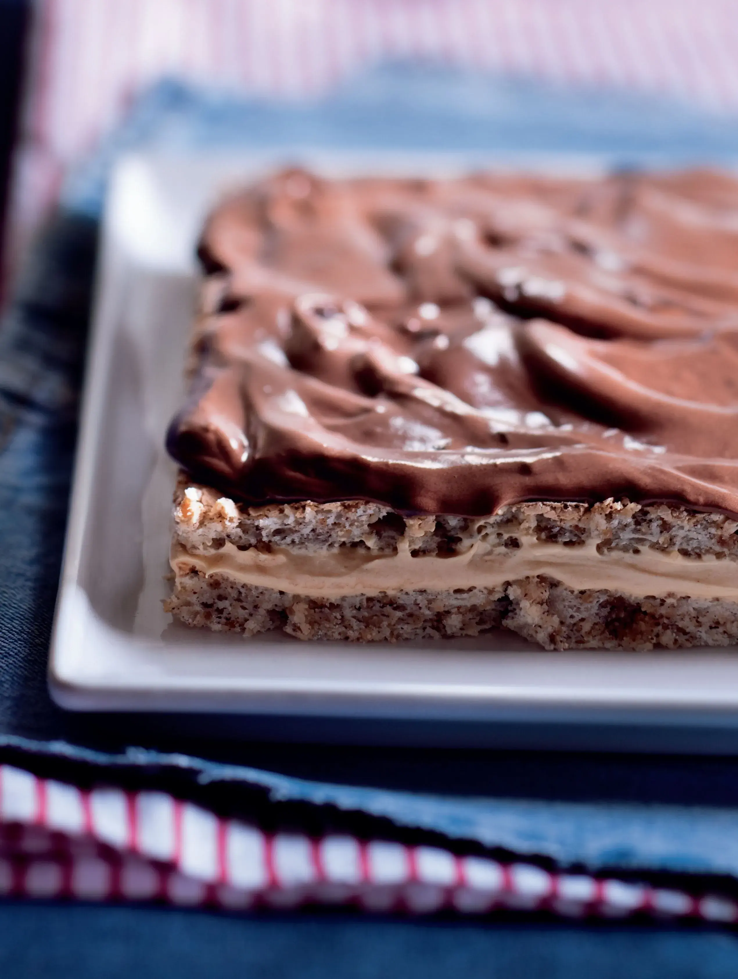 Burákové máslo buď milujete, nebo se mu vyhýbáte. Vyzkoušejte tenhle dezert, a zařadíte se do první skupiny. Moučník s arašídovým máslem představuje senzační propojení jemného bílkovo-ořechového korpusu, burákového a čokoládového krému. Nejlépe chutná odleželý a dokonale vychlazený. Navíc i v takové podobě se dobře krájí a díky tomu vytvoříte úhledné porce, na kterých vyniknou všechny vrstvy.