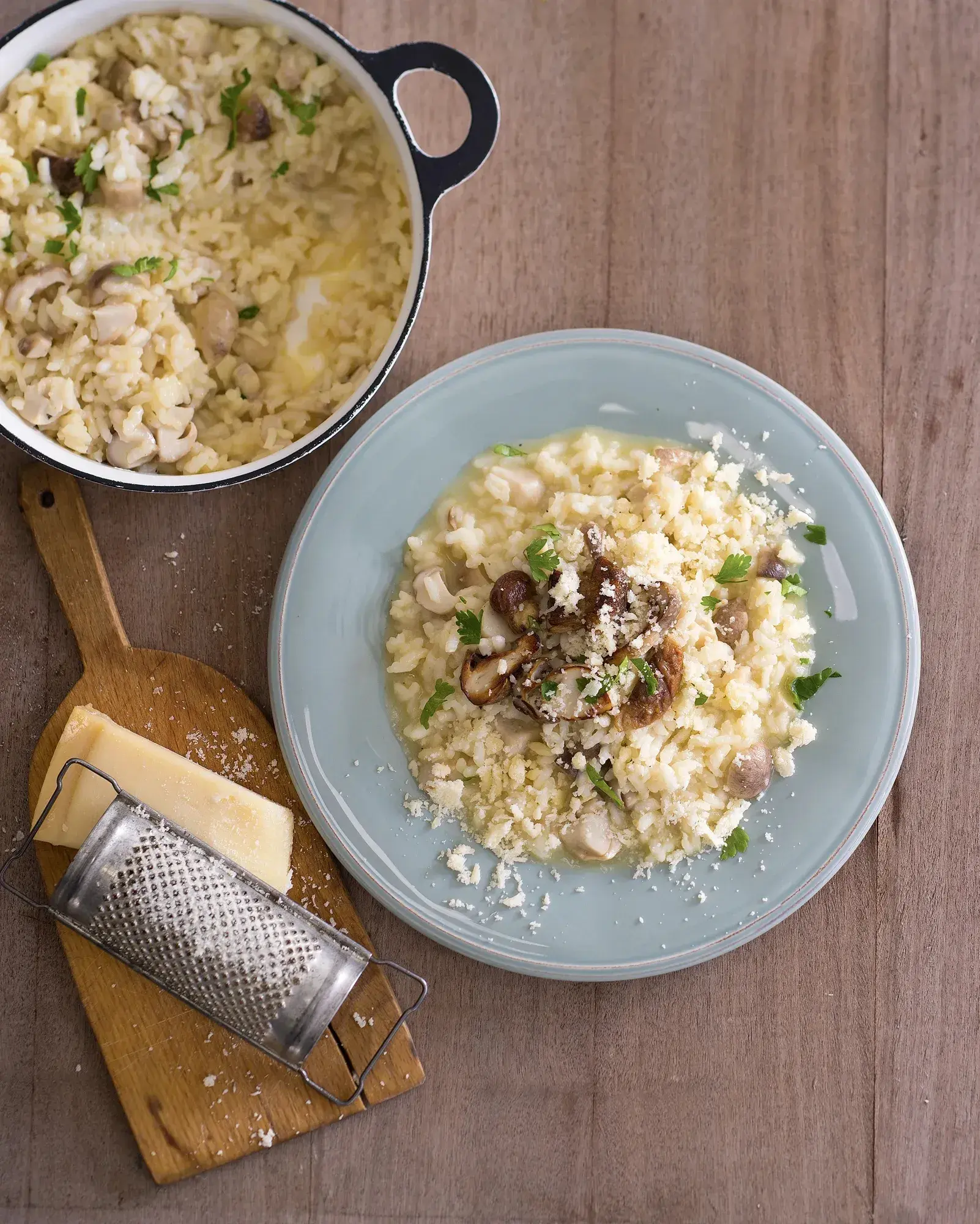Do krémového italského rizota můžete použít čerstvé i sušené houby – nebo rovnou jejich kombinaci pro ještě výraznější chuť. Rizoto s hříbky je ideální recept zejména pro chladné podzimní dny. Jídlo je voňavé, syté a naprosto uklidňující. Co víc si přát?
