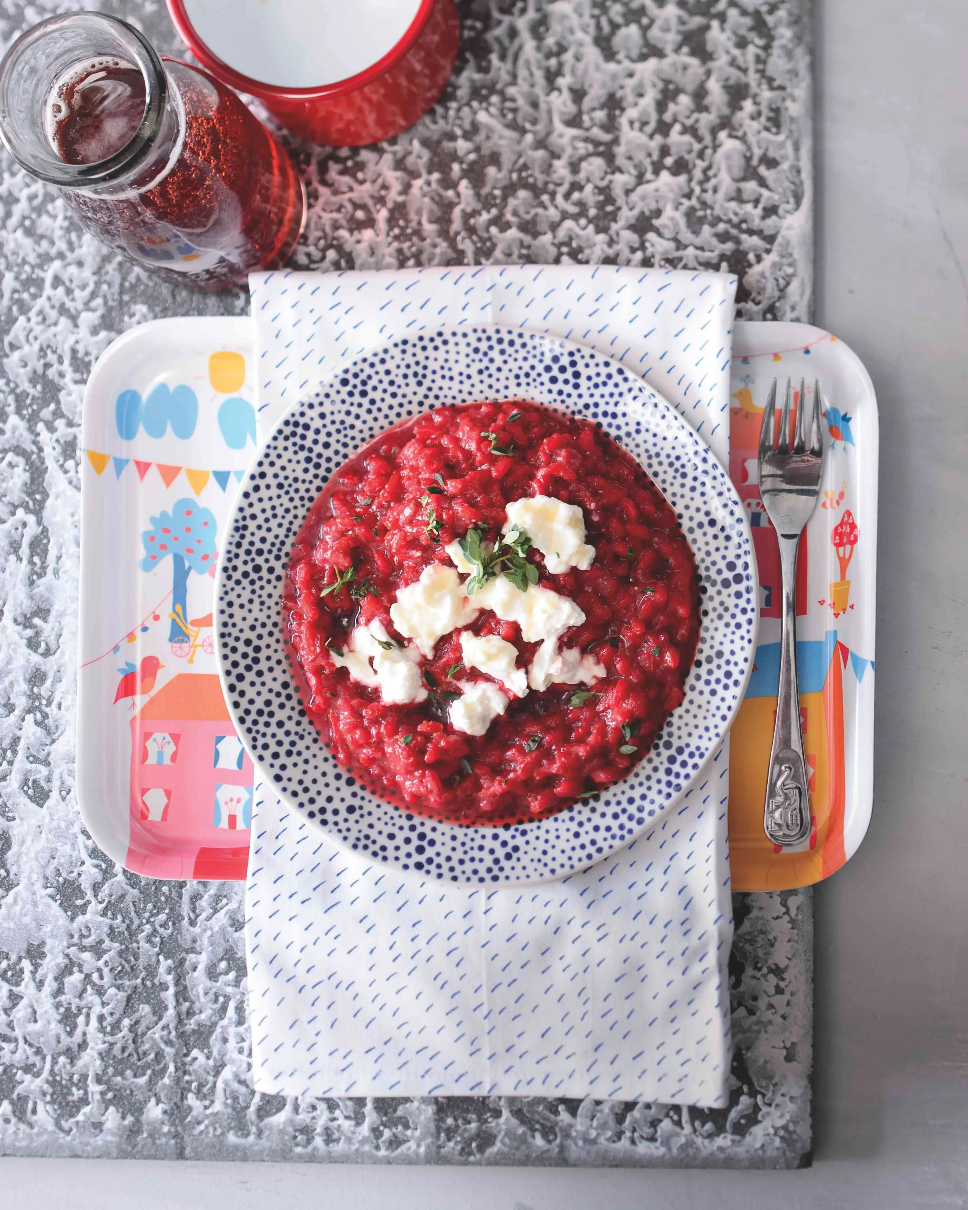 Proměňte u dětí poměrně nepopulární červenou řepu v kouzelně barevné a krémové rizoto. Budou ho zbožňovat! Rizoto s červenou řepou jsme posypali rozdroleným čerstvým sýrem, ale klidně můžete použít i kozí sýr, ten si s červenou řepou náramně rozumí.