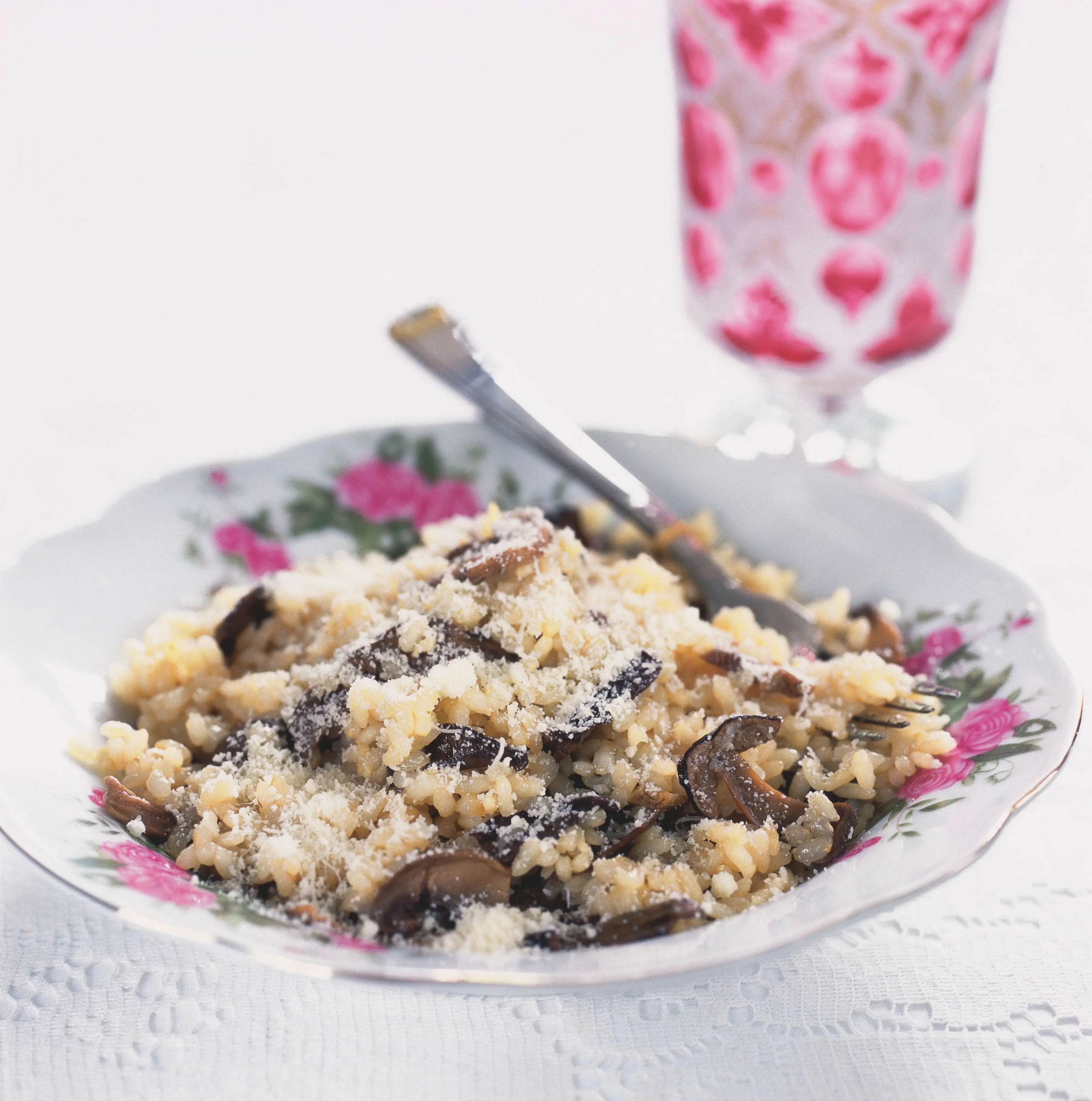 Místo polévky se v Itálii setkáte s ‚primi piatti‘ neboli ,vstupními jídly‘. Rizoto s houbami a sýrem je právě jedním z takových pokrmů. Rýže v rizotu by, podobně jako těstoviny, měla být vláčná, ale ne rozvařená. Proto u vaření houbového rizota dodržujte předepsaný postup v receptu a raději se od plotny příliš nevzdalujte, ať ve výsledku nemáte houbovou kaši.
