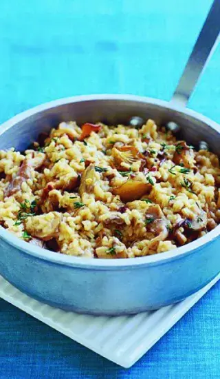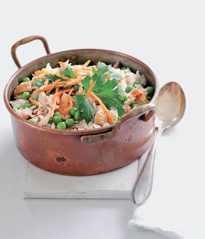 Rizoto s kuřecím masem je chutné jídlo se zkratkou pro ty, kteří s vařením teprve začínají nebo hledají recept na rychlou večeři. Jde o jakési ‚rizoto po česku‘, tedy smícháním zbytků od oběda se zeleninou a rýží. Příprava je skutečně jednoduchá a zvládnete ji za pár minut. Pochopitelně vše doladí nastrouhaný tvrdý sýr – v našem případě čedar. Ale klidně použijte i klasický eidam či goudu.