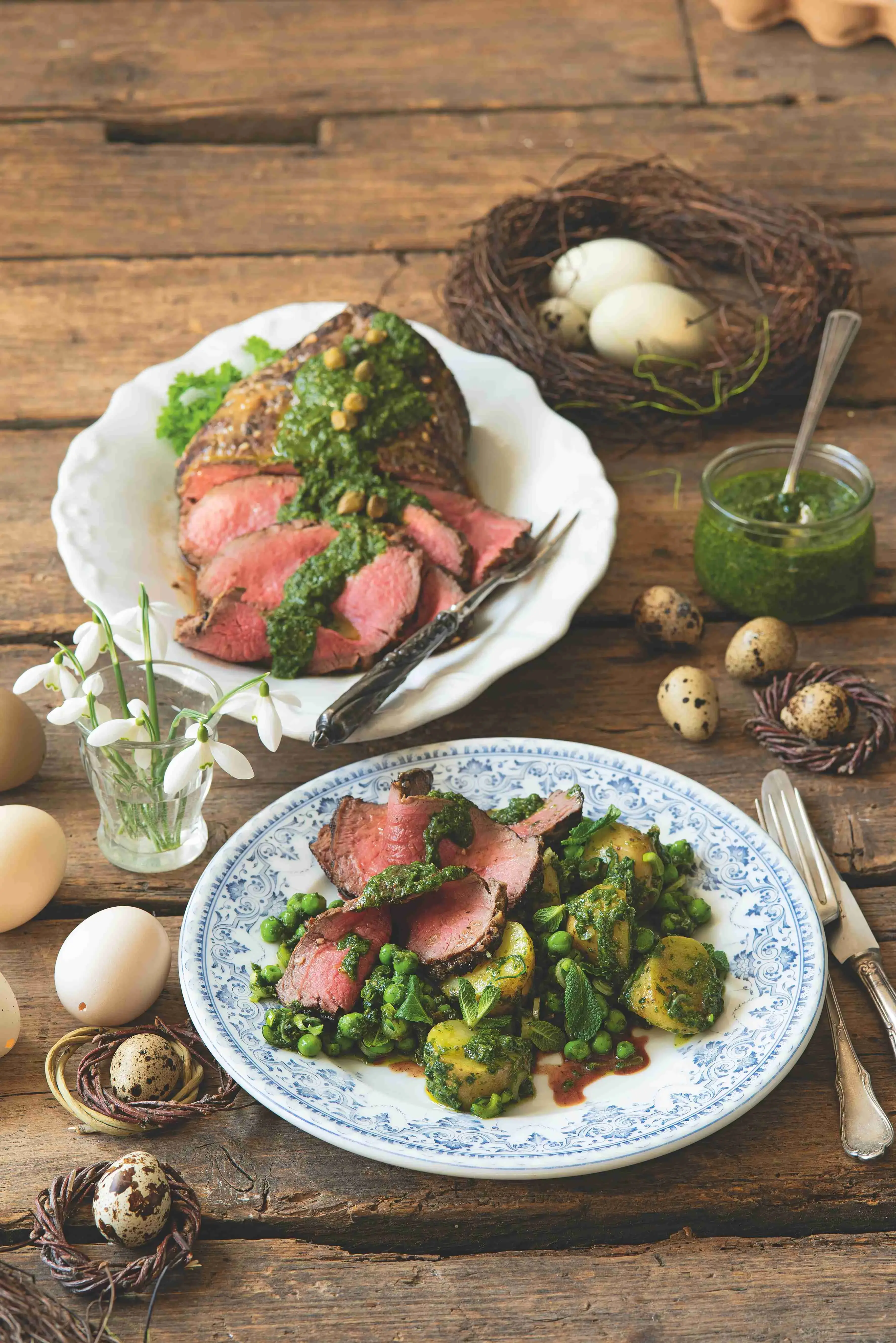 Rostbíf vypadá složitě, ve skutečnosti je snadný a udělá na stole hodně parády. Základem úspěchu je pořídit si teploměr a kontrolovat propečení masa. Šťavnaté pečeni vysloveně sluší společnost jarní přílohy v podobě brambor se salsou verde z medvědího česneku.
