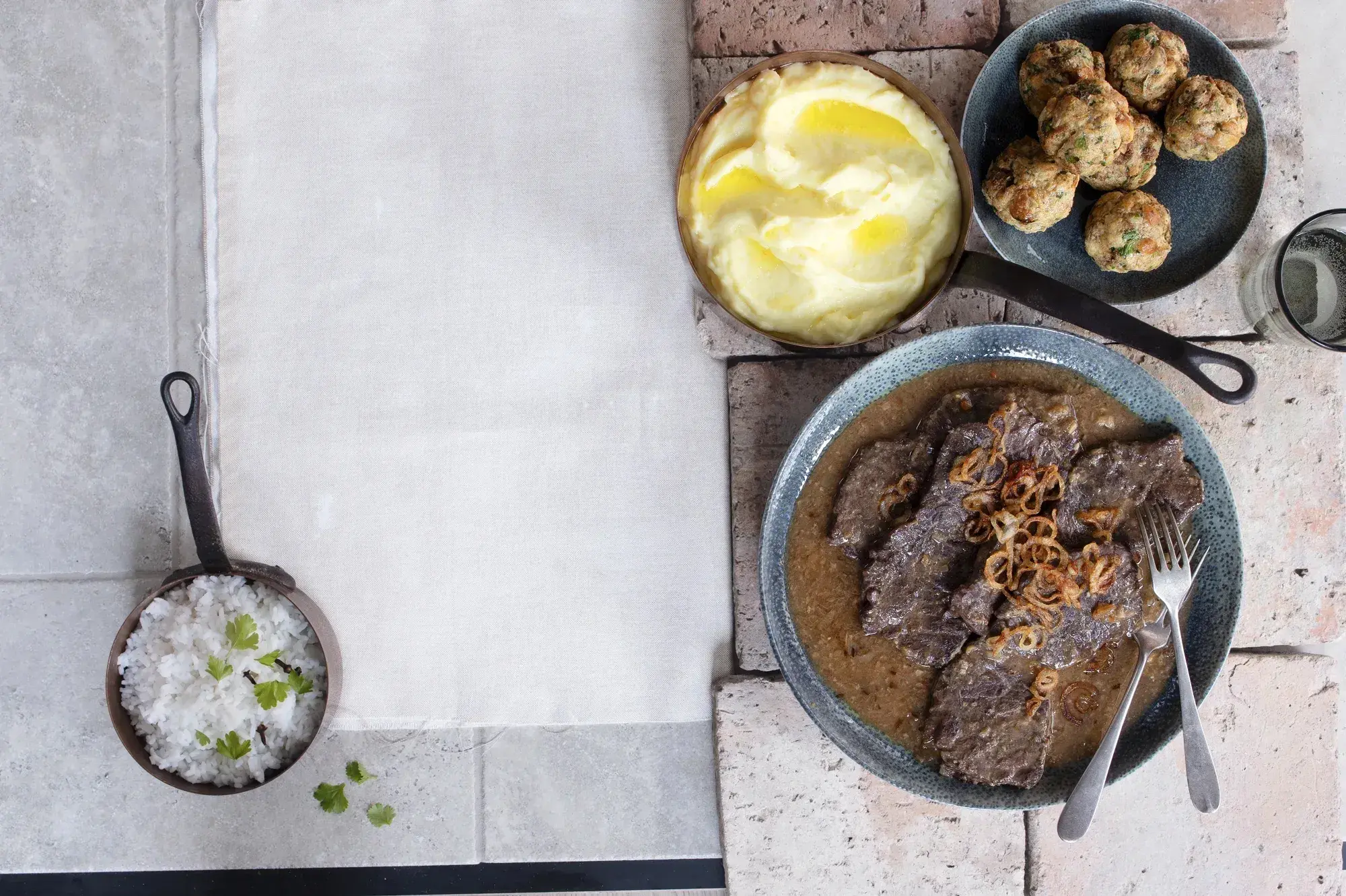 Roštěnky s přílohami, které jsou legendární. Nikdo nedělá tak hedvábnou kaši, dokonalou rýži a velejemné knedlíčky jako Marek Všetečka. „To není v receptu, to je tady v těch zlatejch ručičkách, který to pro vás vaří,“ dobírá si nás vždy Marek.