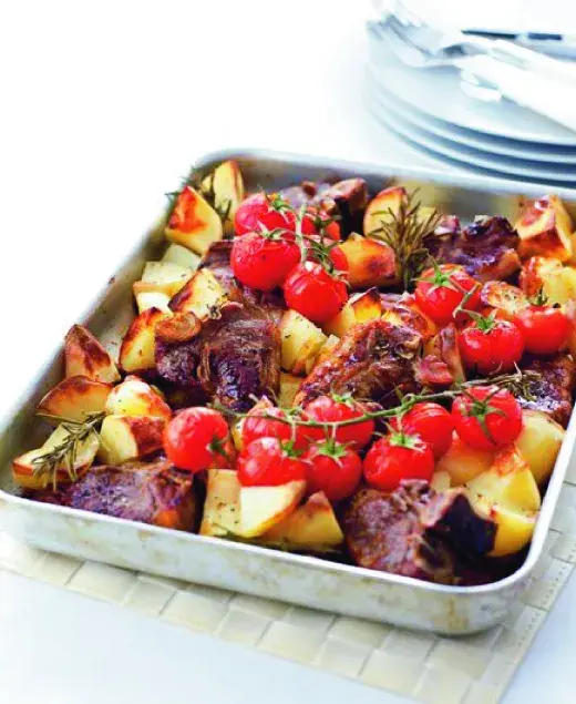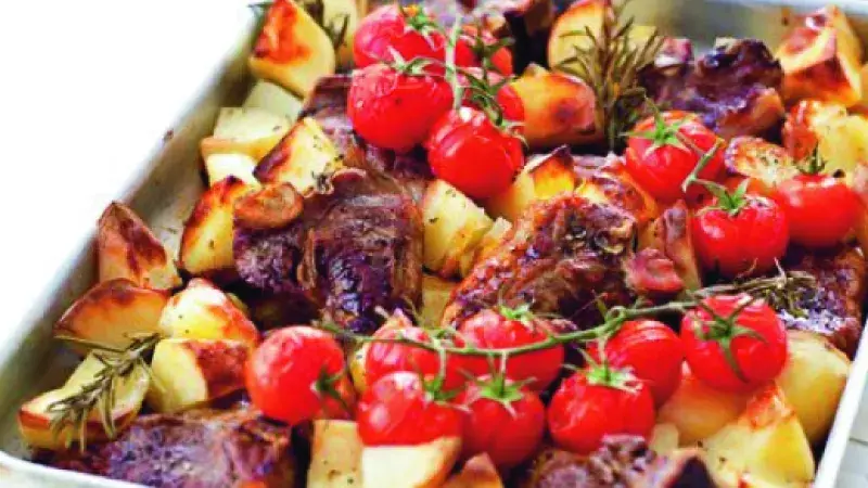 Výborný letní oběd z jednoho hrnce. Vůně pečeně s česnekem a rozmarýnem.