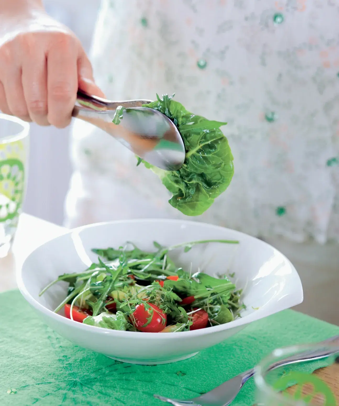 Svěží salát s jemně pikantní zálivkou z dijonské hořčice a bílého vinného octa.