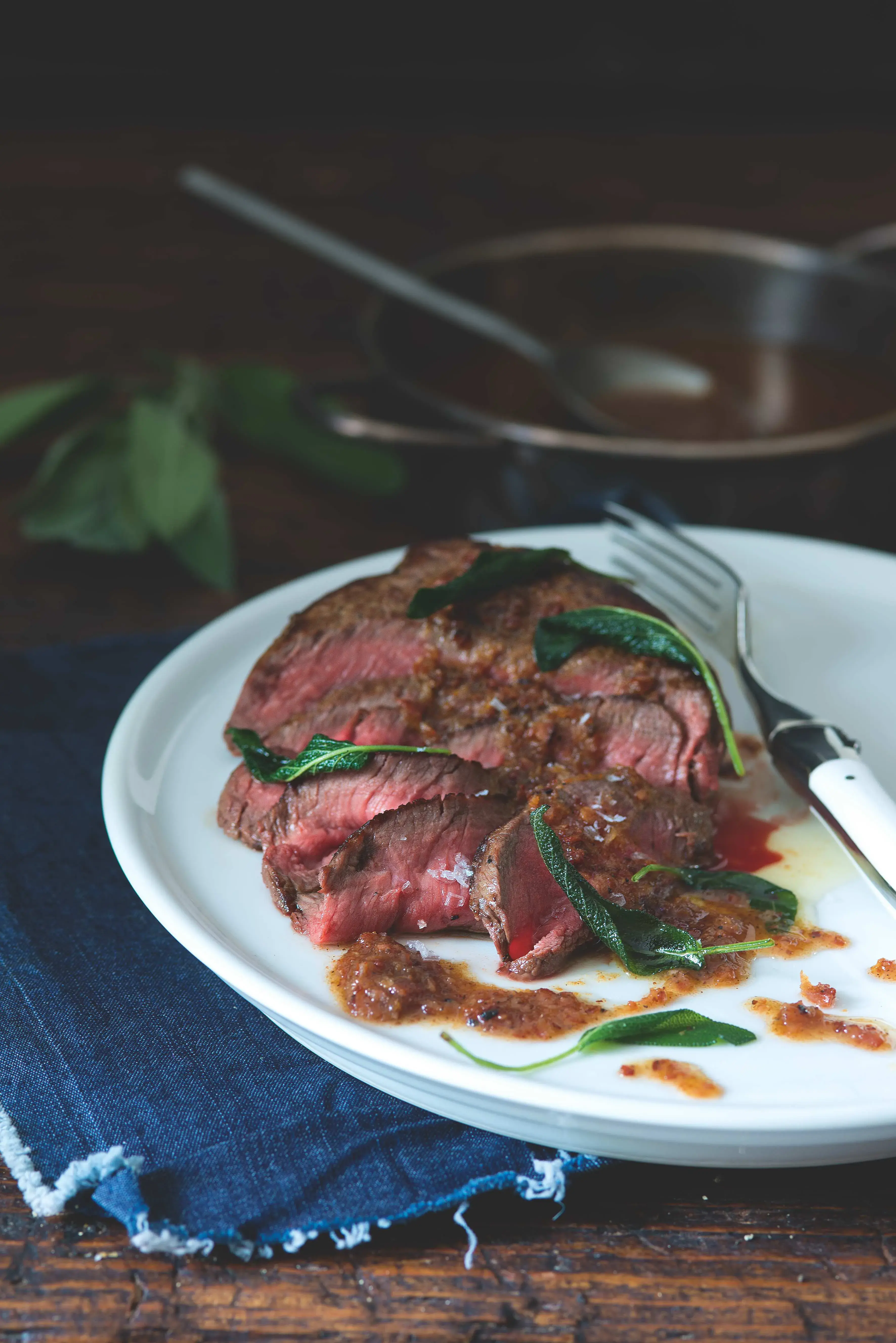 Rumpsteak je plátek z malého ořechu vysoký 2,5 cm, jemný a s plnou chutí. Omáčka Ambiente není úplně klasická omáčka – má spíše charakter ochuceného másla. V ústech vám ovšem způsobí bouřlivou slaninovou explozi, po níž následuje dlouhý jemný máslový dojezd – a pozor, je návyková!
