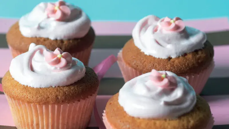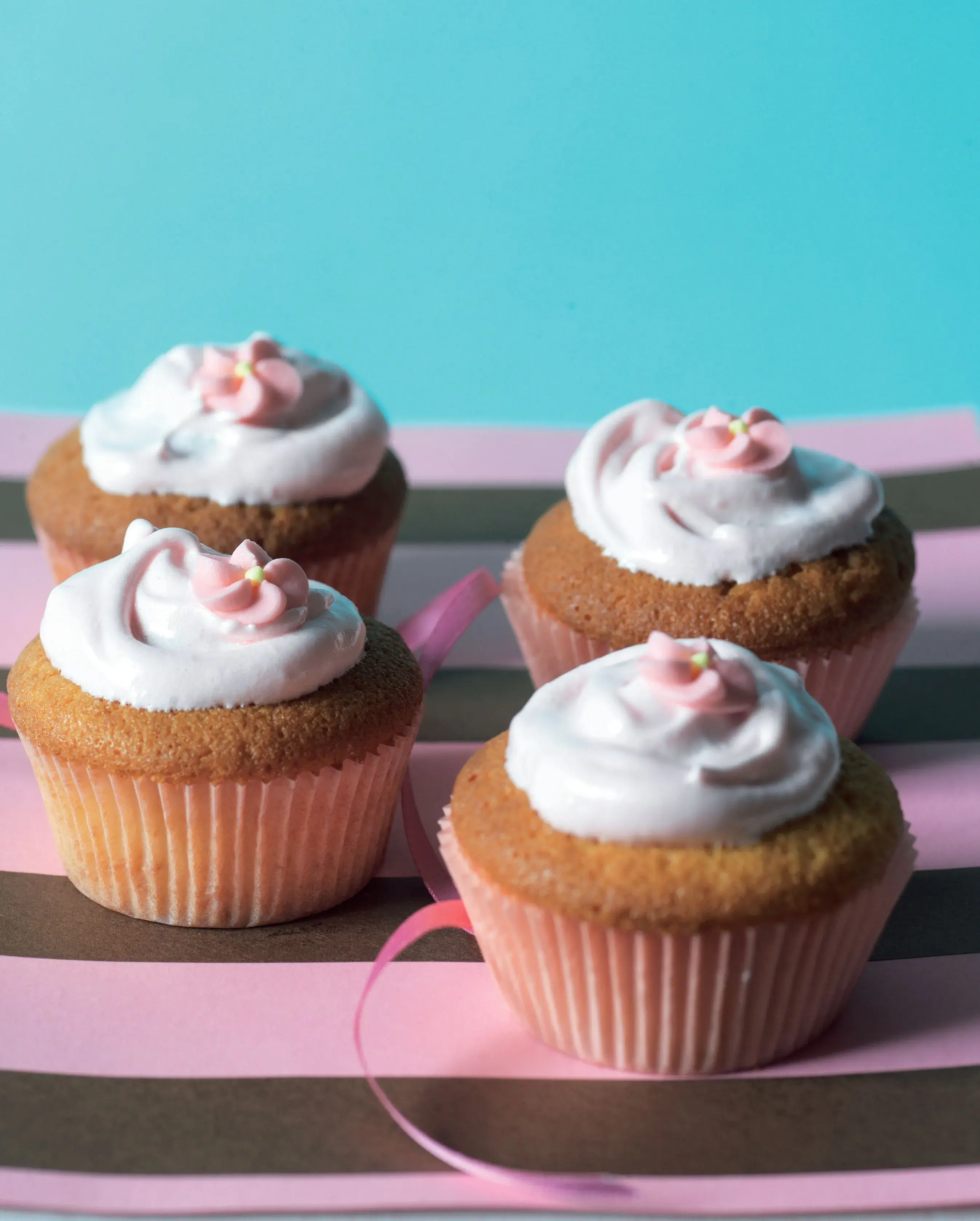 Nevíme, jak se to jeví vám, ale oproti americké tradici jsme se při zdobení velmi mírnili – růžová cukrová kytička je naším jediným výstřelkem. Američané ovšem milují dortíky s krémem obarveným namodro či nazeleno, ozdobené různobarevnými figurkami a kytičkami nebo třeba imitací trávy s lezoucími beruškami…