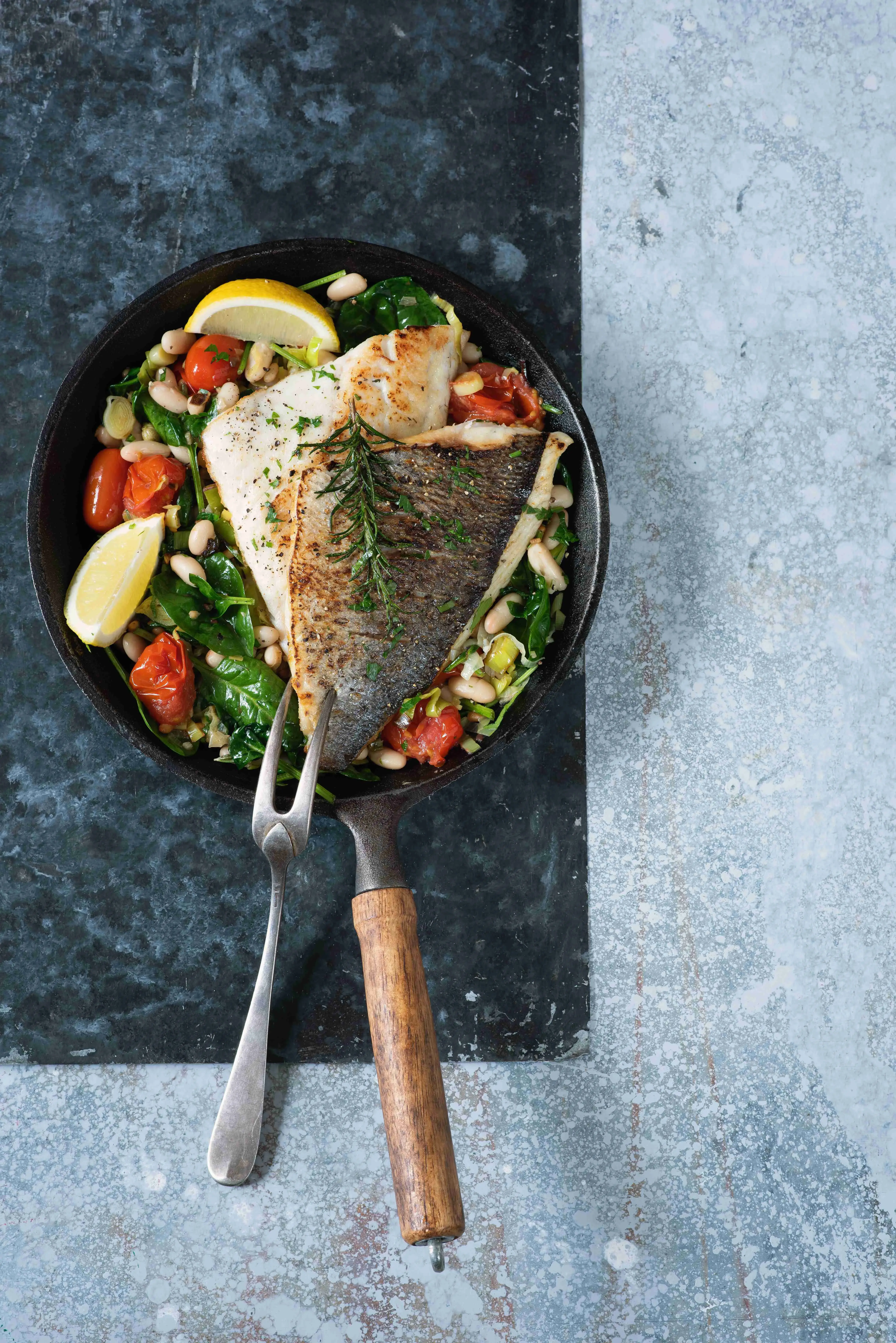 Chcete se najíst rychle a zdravě, pochutnat si a zašpinit při přípravě jídla co nejméně nádobí? Pak jste objevili ten právný recept! Lehká bělomasá ryba s fazolemi, špenátem a rajčátky z jedné pánve všechny požadavky splňuje na jedničku!