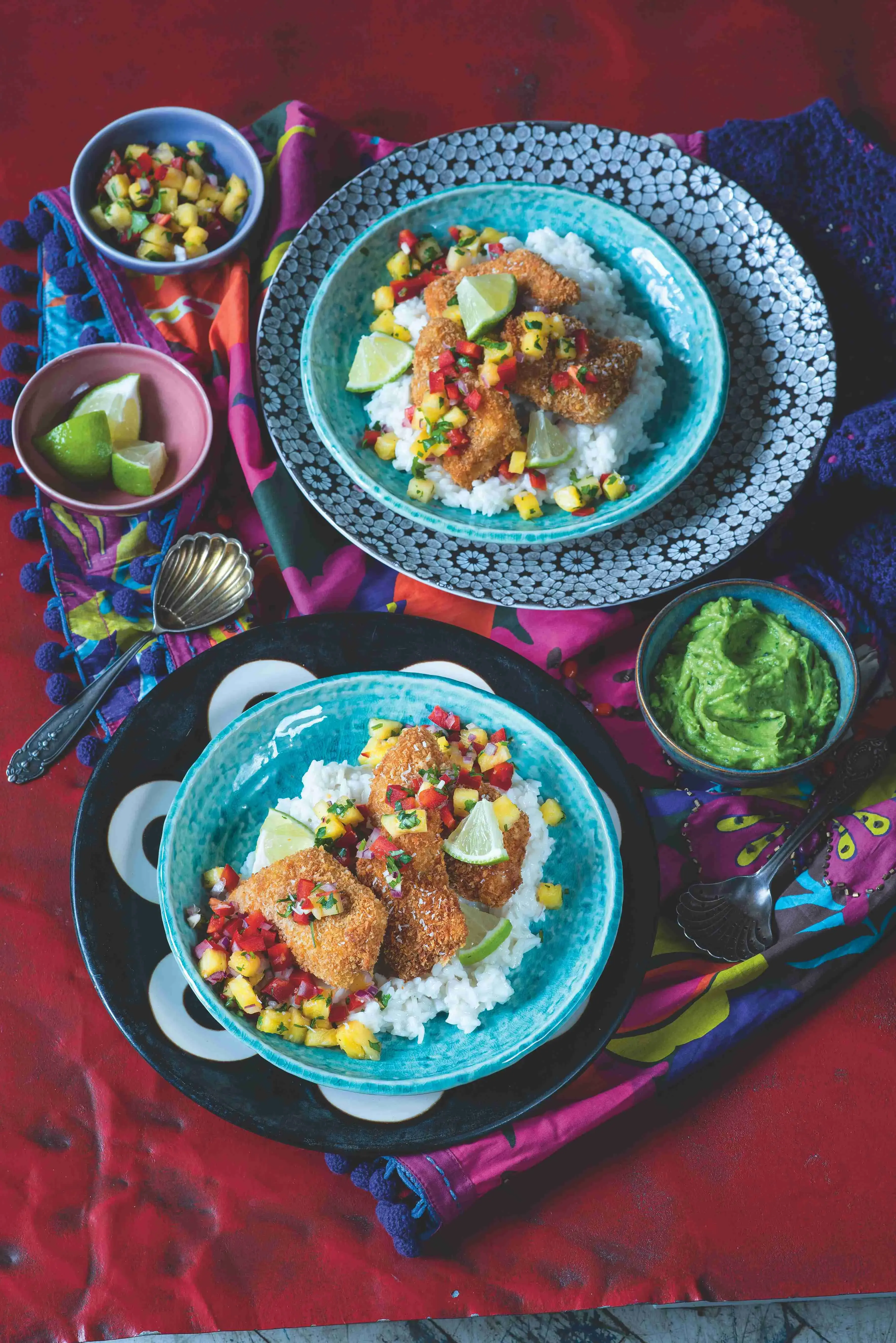 Jídlo, které můžete rozložit na komponenty: ananasovou salsu lze podávat i ke krevetám či kuřeti, rýži prakticky ke všemu – ladí třeba k pálivému jamajskému kuřeti jerk nebo k teriyaki omáčce. Zkuste to ale nejdřív všechno dohromady s rybou, je to povedená kombinace.