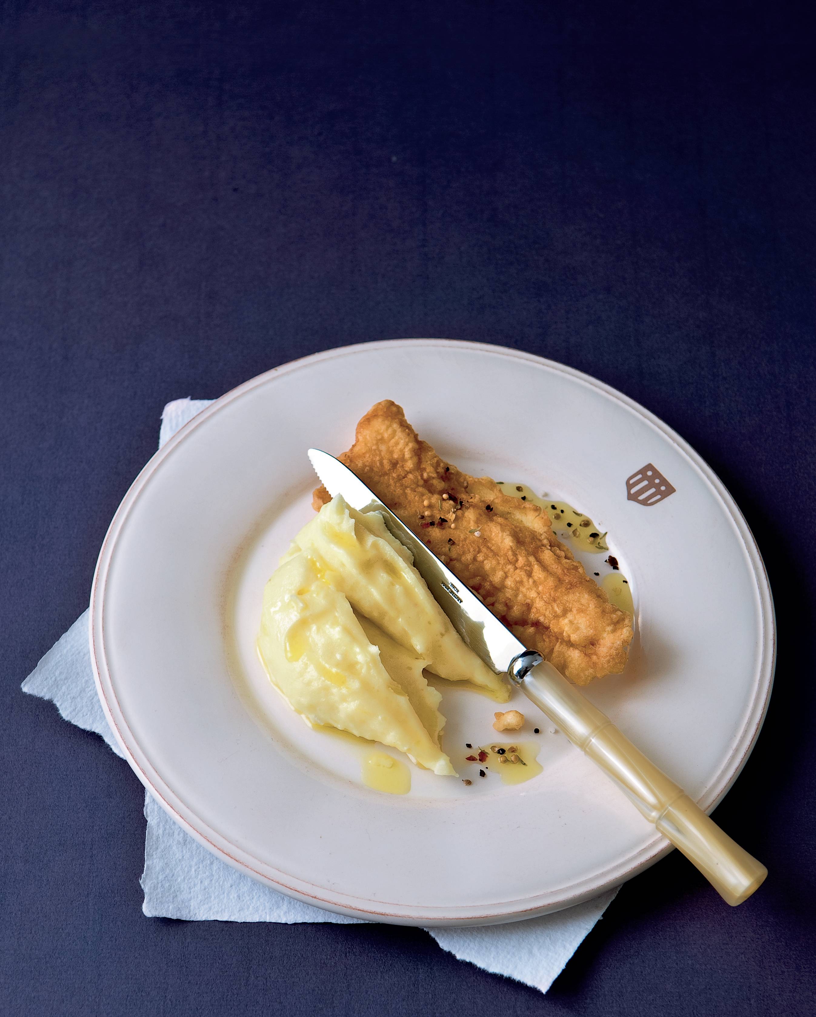 Na první pohled obyčejná smažená ryba s kaší, ve skutečnosti pikantní delikatesa...