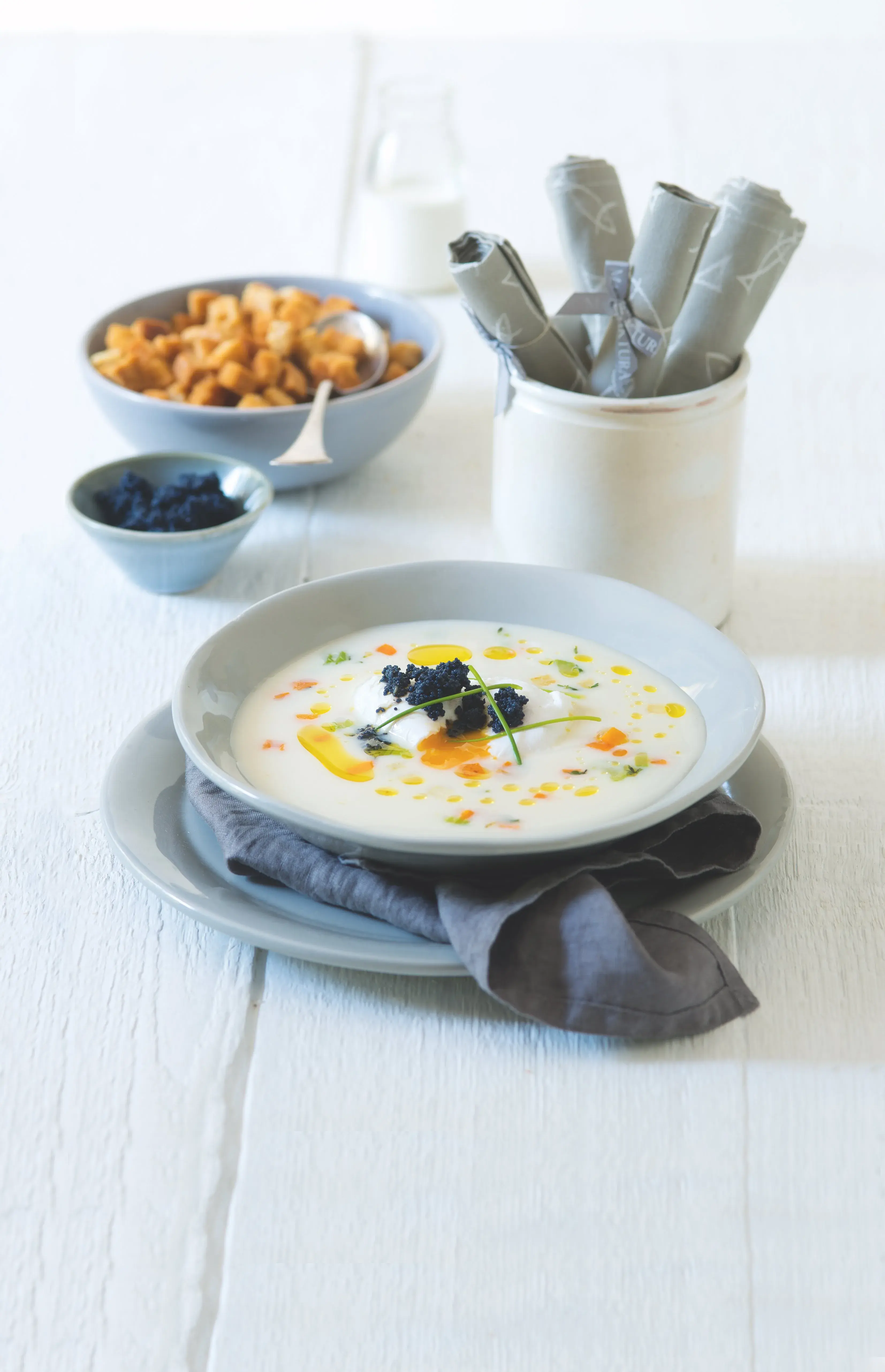 Takhle rybí polévka je nefalšovaným vánočním luxusem. Ovšem připravovat ji jenom o Vánocích by byla věčná škoda. Základem rybí polévky je vývar, mix zeleniny a smetany. Kaviár a zastřené vejce jsou už jen tou pověstnou třešničkou...
