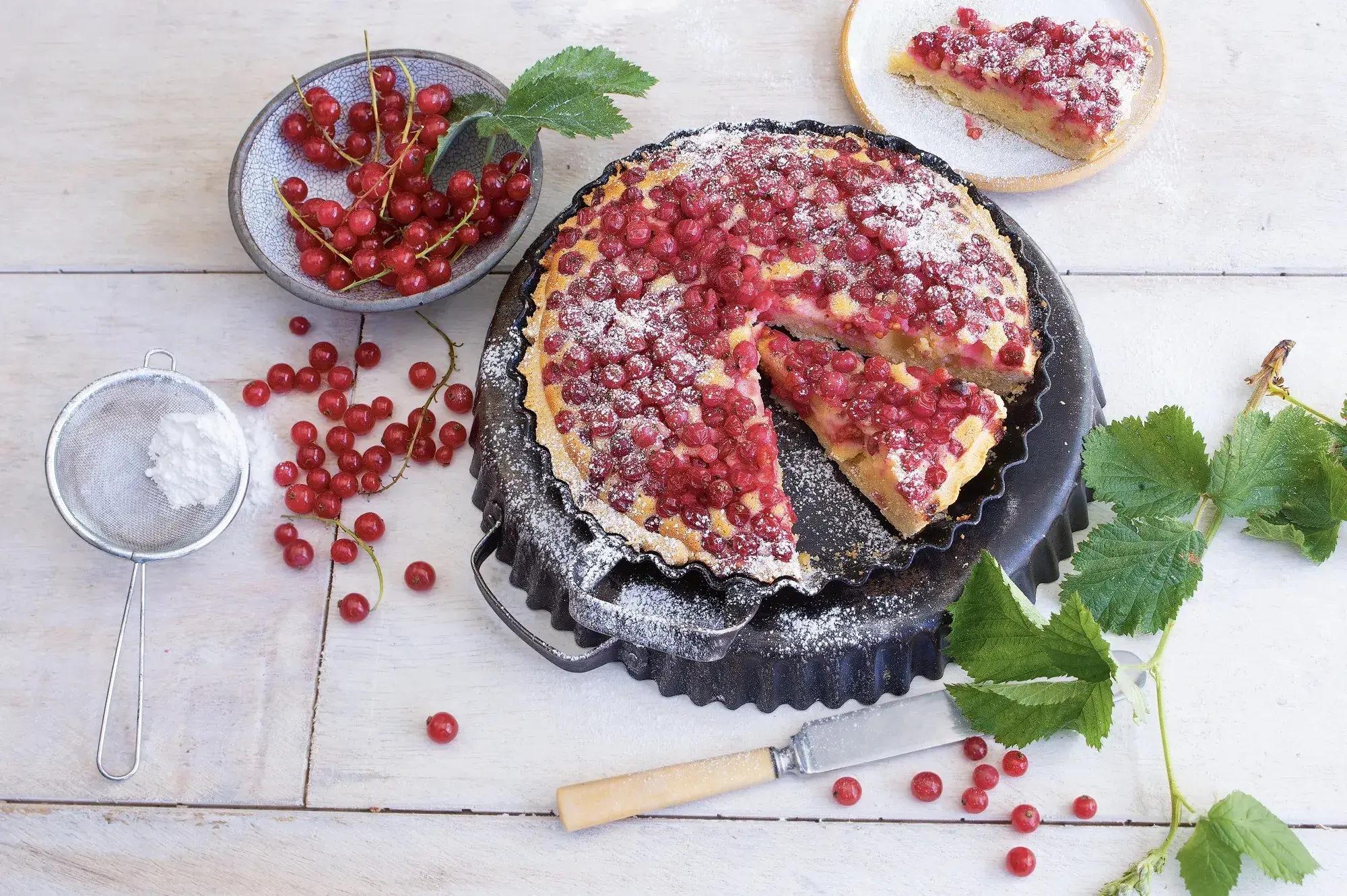 Rybíz bývá tak trochu popelkou zahrádek. Křehké těsto a marcipán představí tyto bobulky jako luxusní ovoce. Rybízový koláč s marcipánem je recept, který se u vás jistě brzy zabydlí.